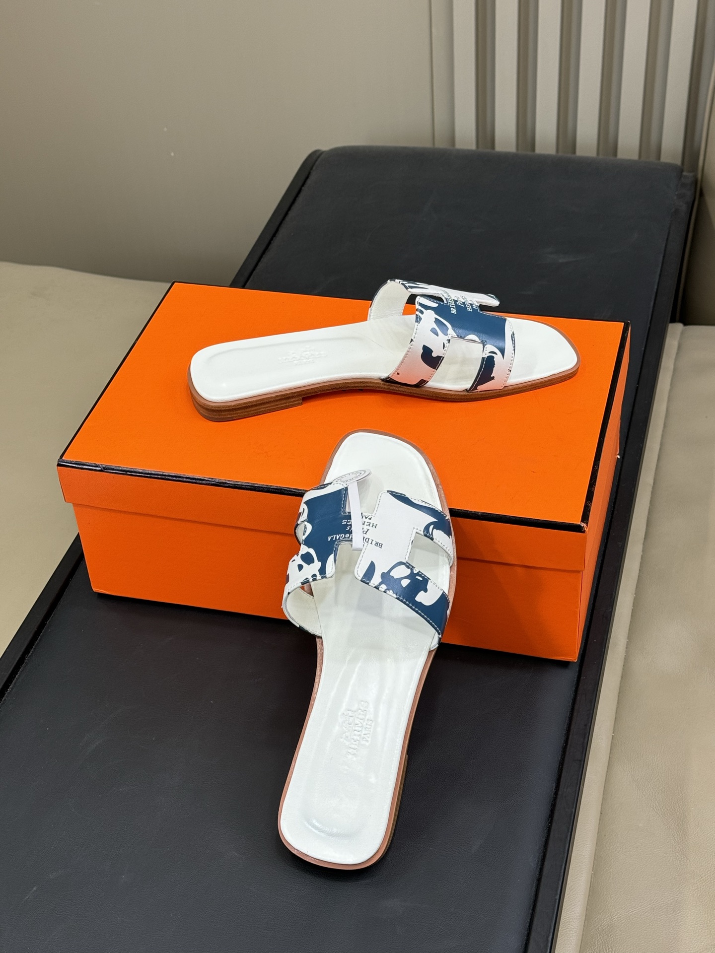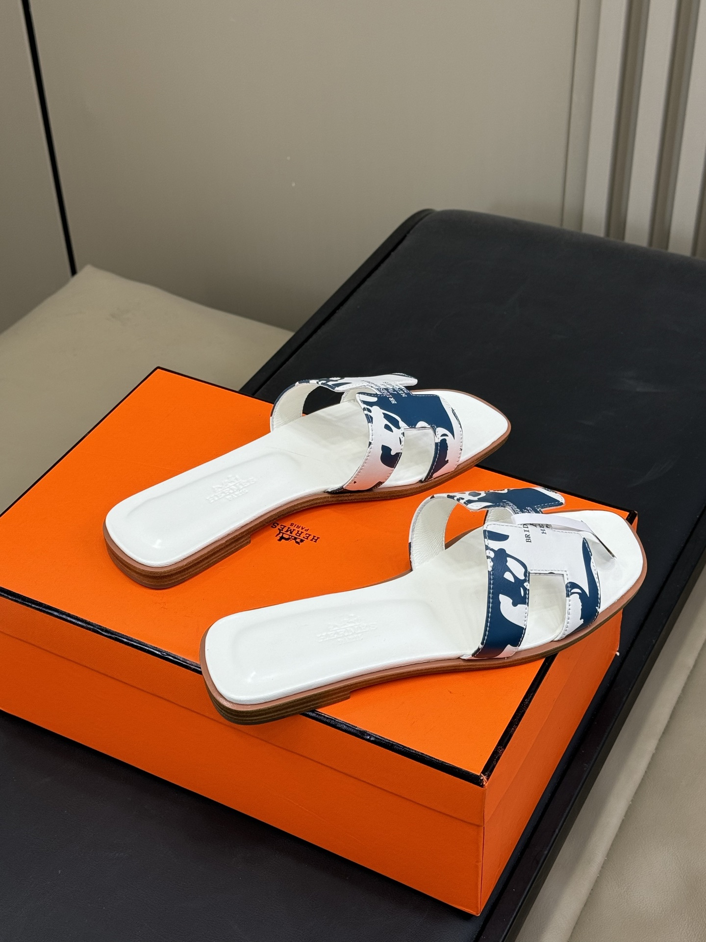 Blue Monogram Denim Slide Sandals – White Sole Casual Slip-On