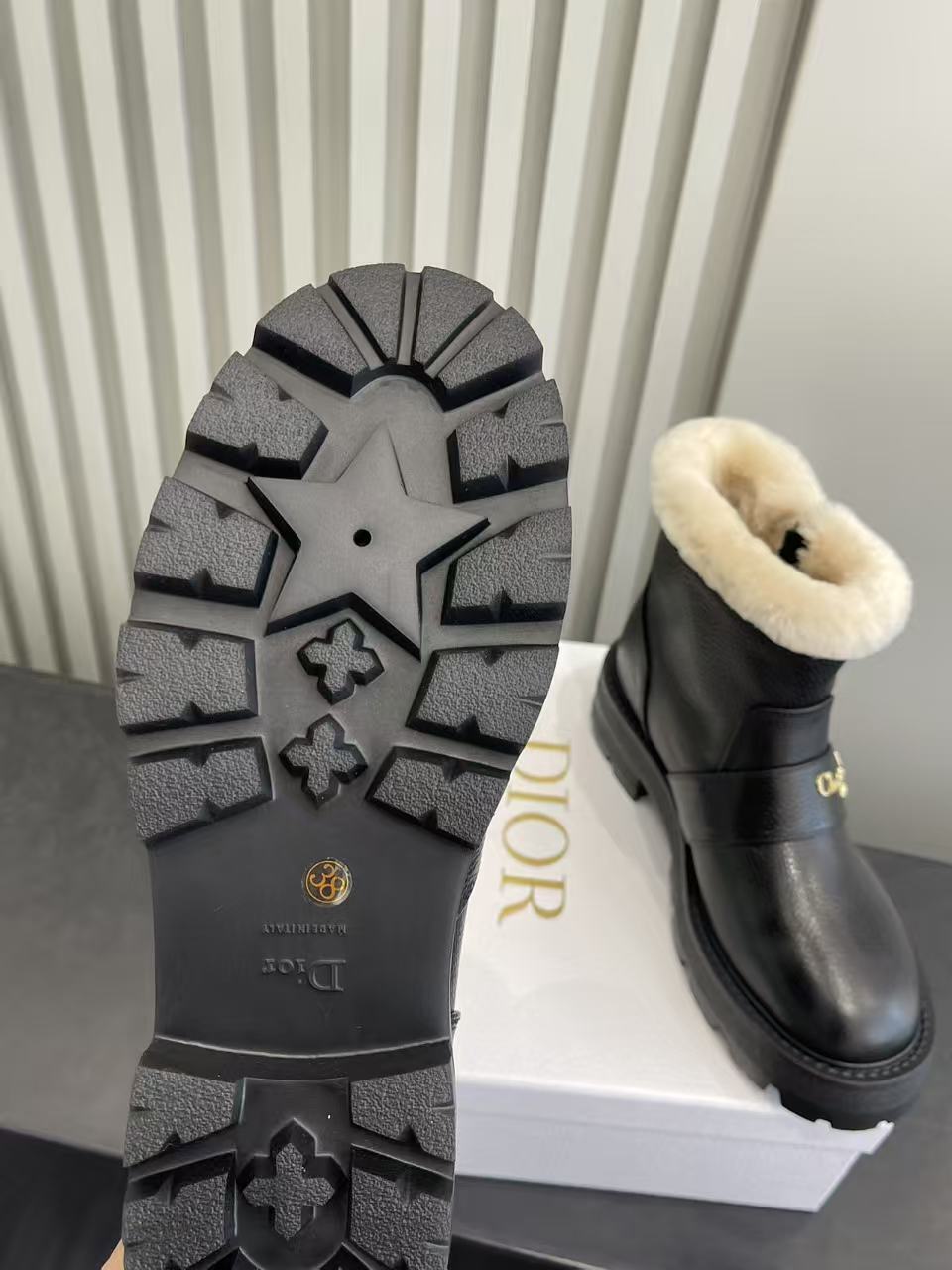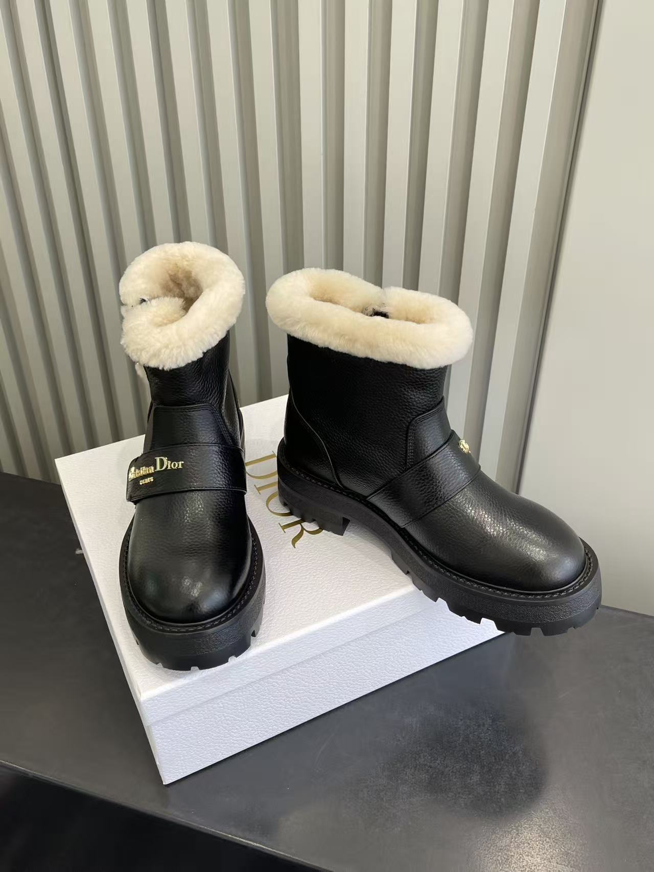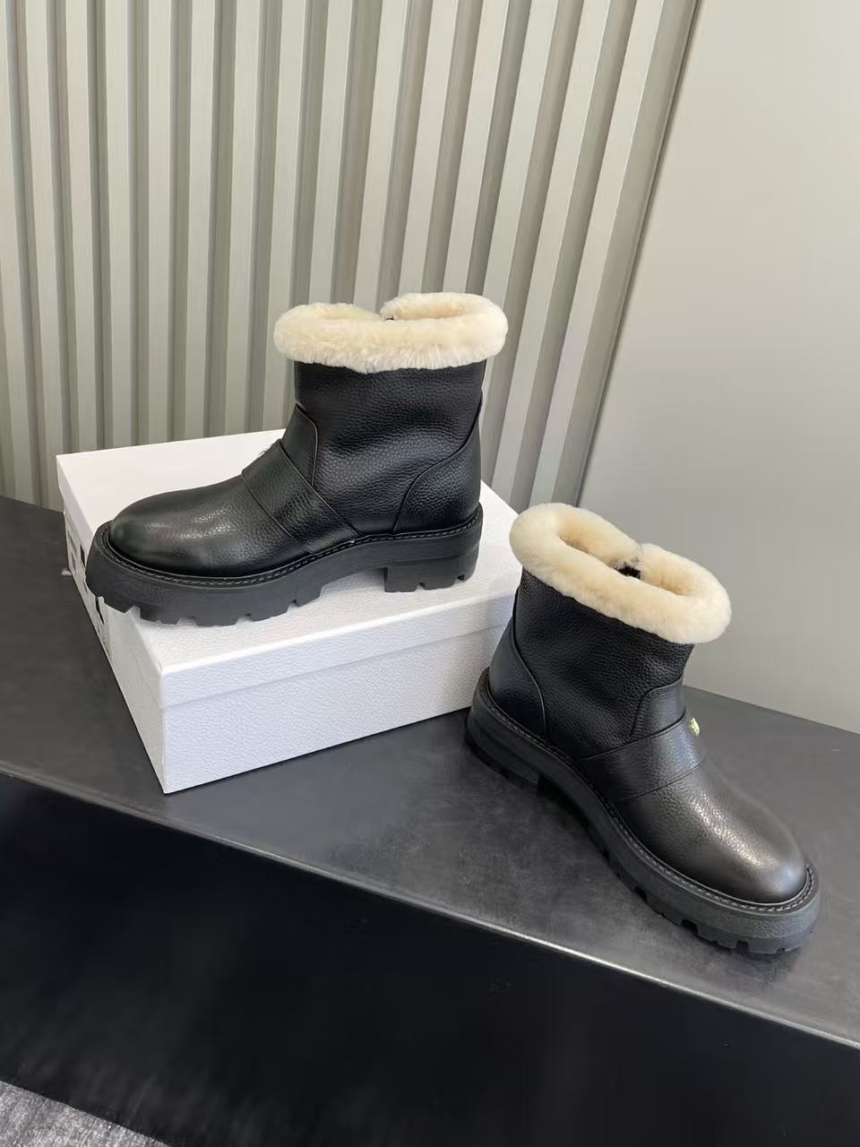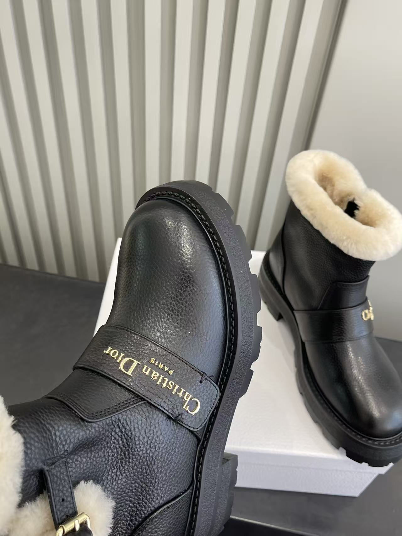 Dior Black Grained Calfskin Ankle Boots with Shearling Lining