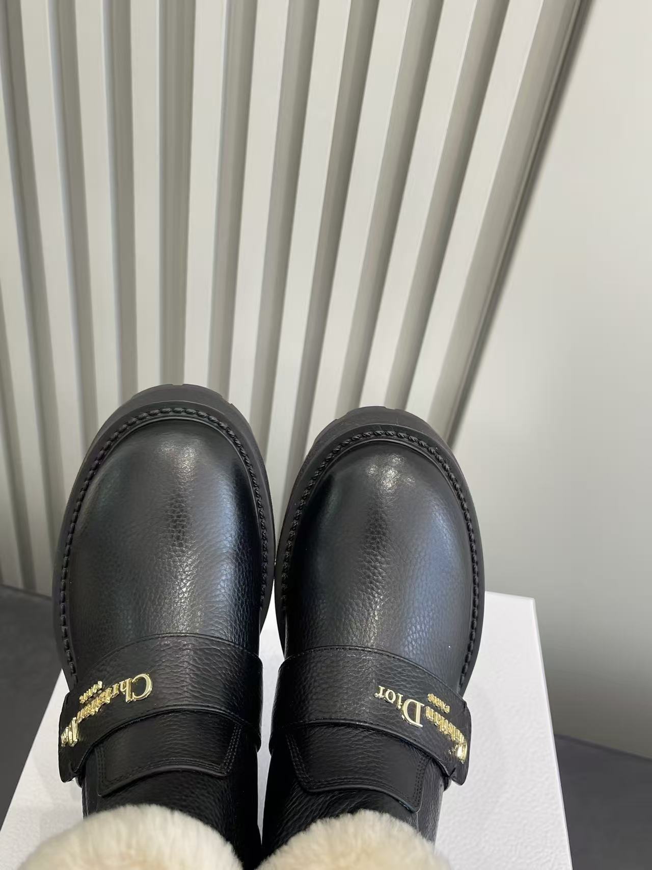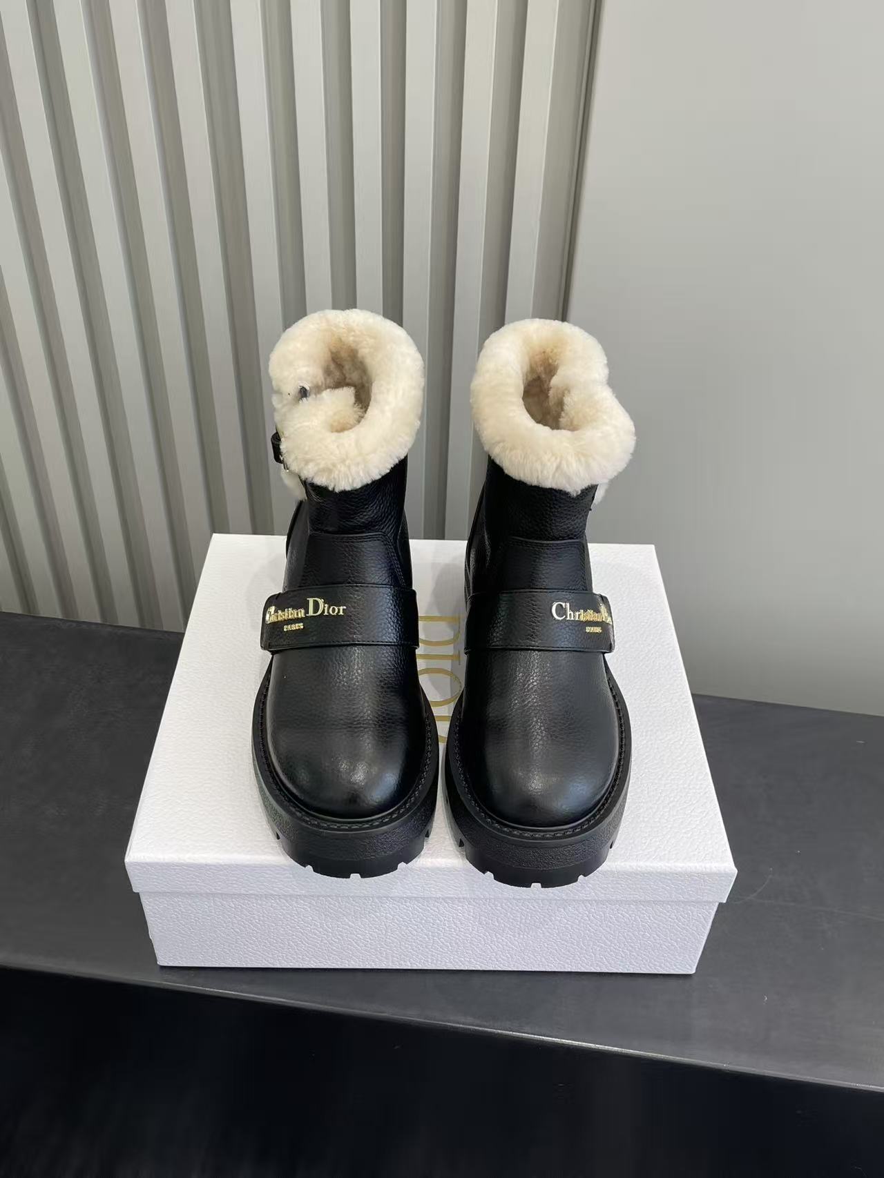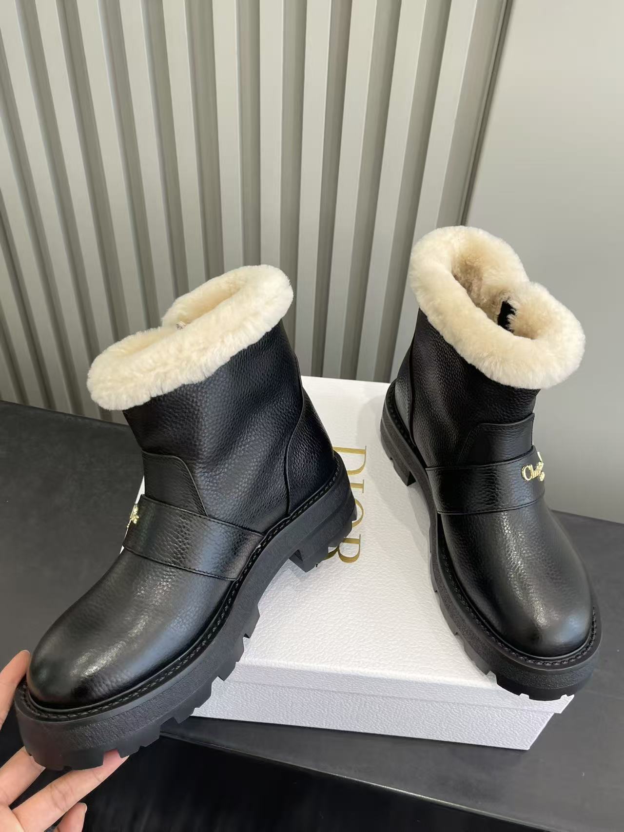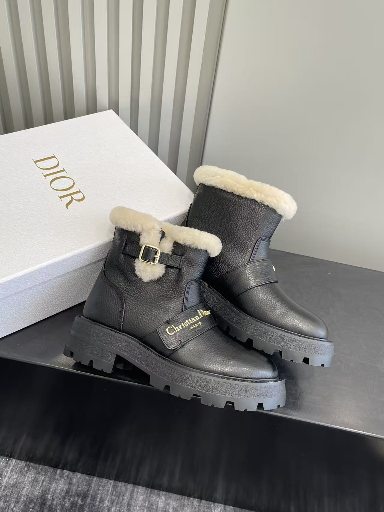 Dior Black Grained Calfskin Ankle Boots with Shearling Lining