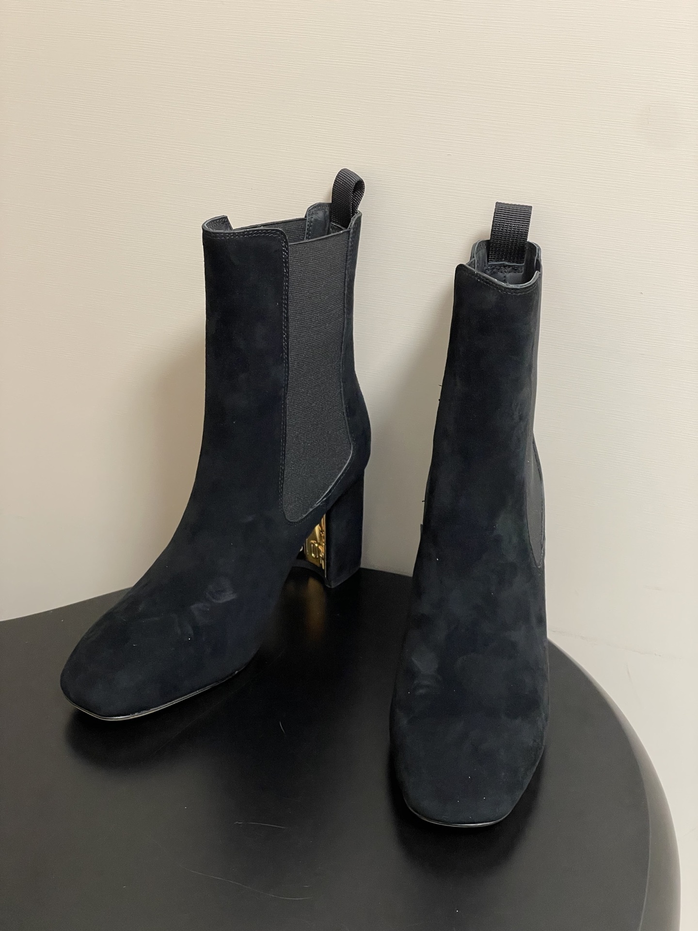 Dior Black Suede Heeled Ankle Boots with Gold Logo Detail