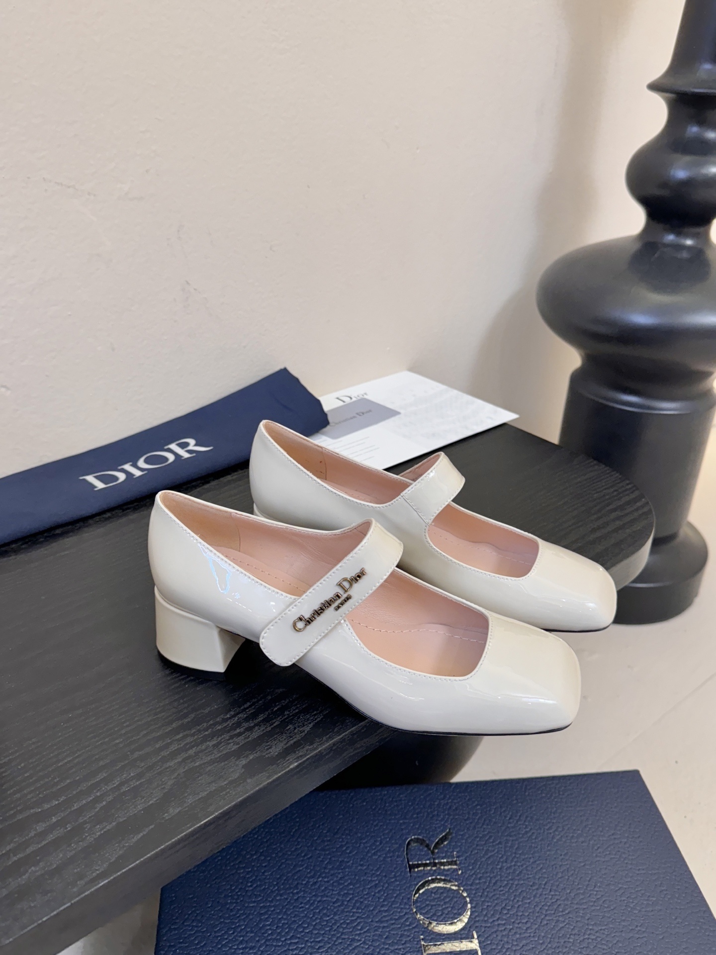 Dior Cream Patent Leather Mary Jane Pumps with Block Heel
