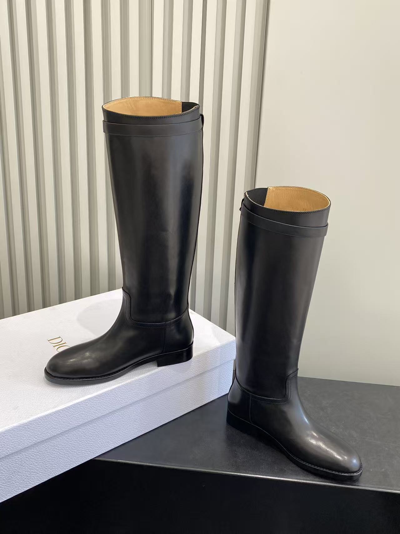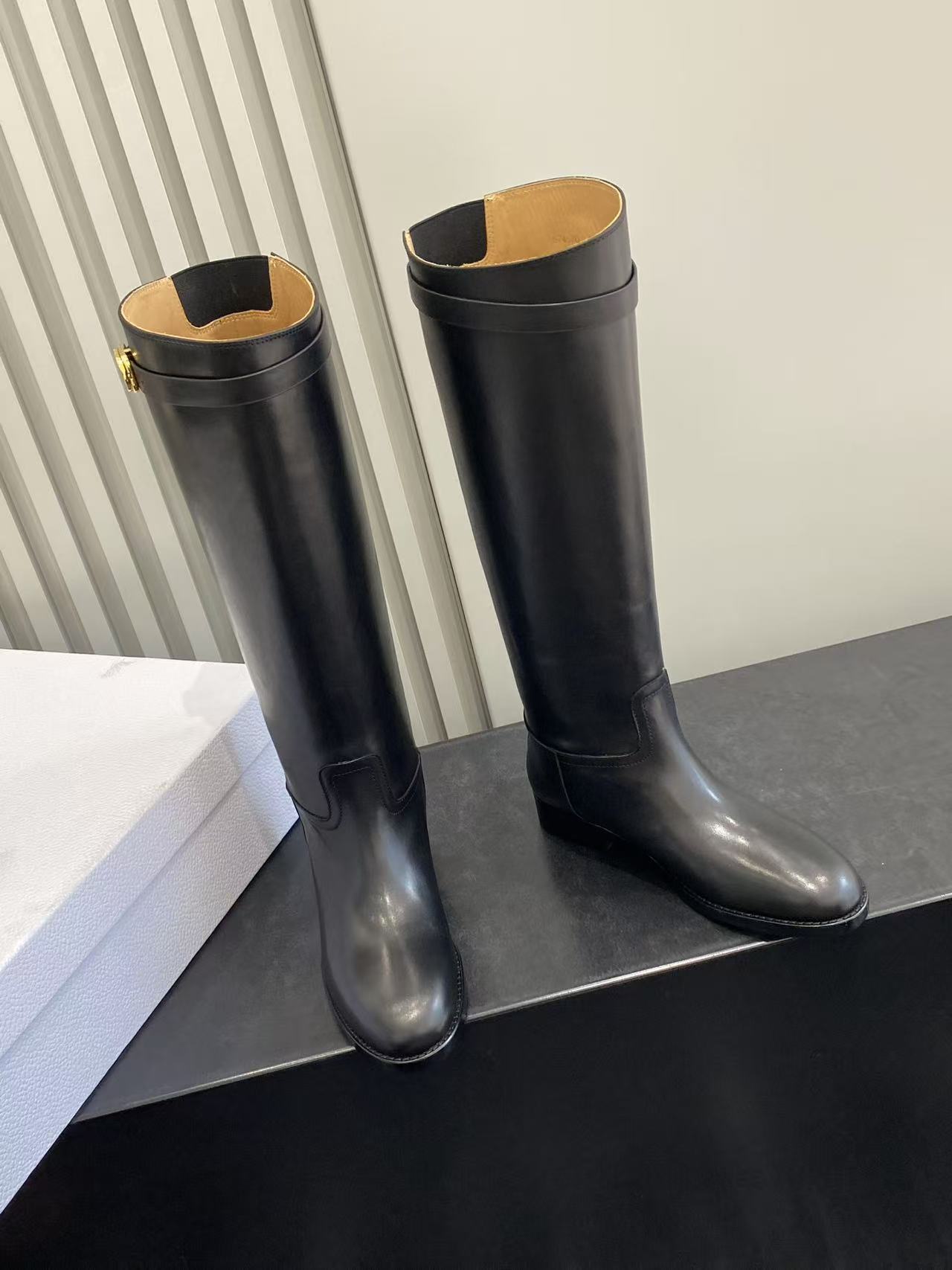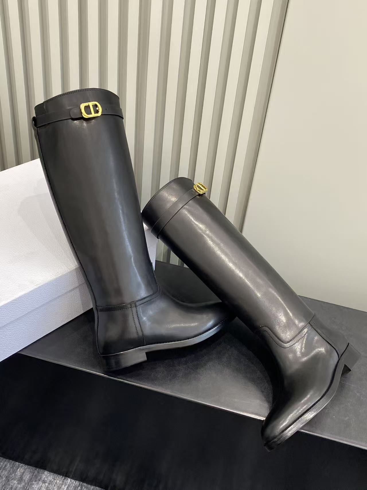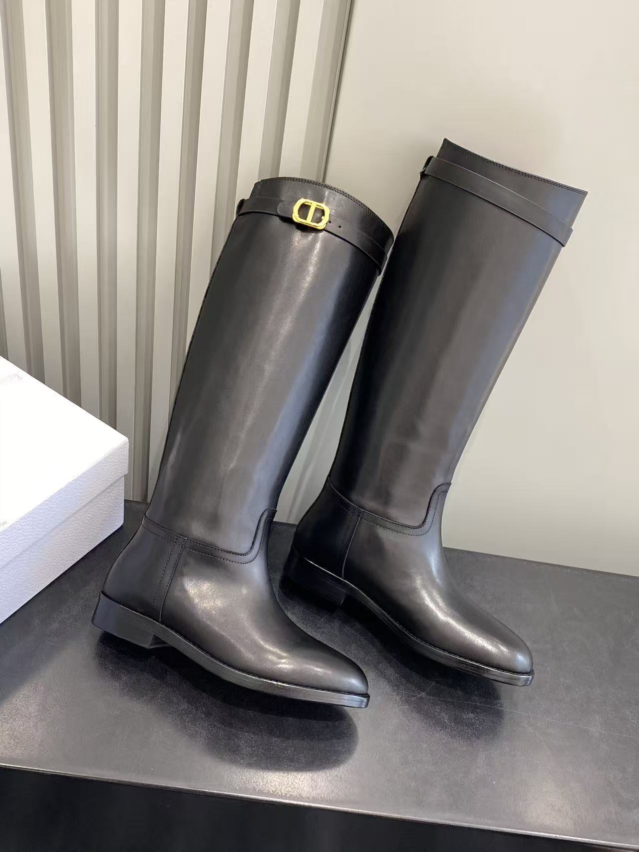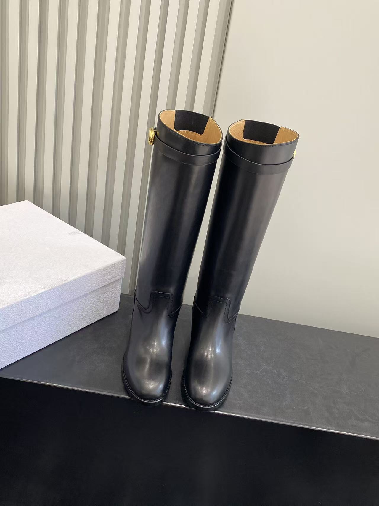 Dior Empreinte Black Calfskin Boots with Gold CD Buckle