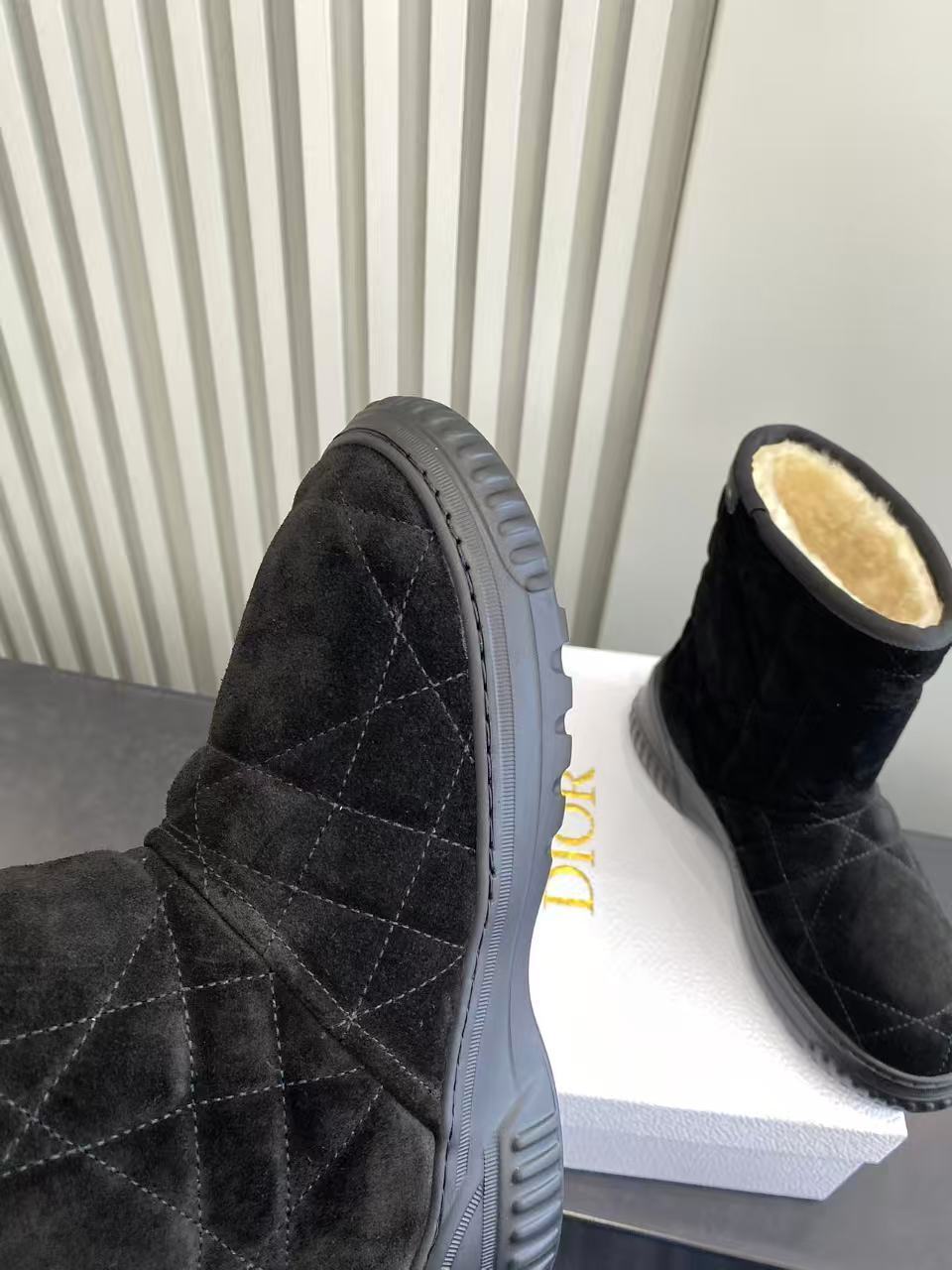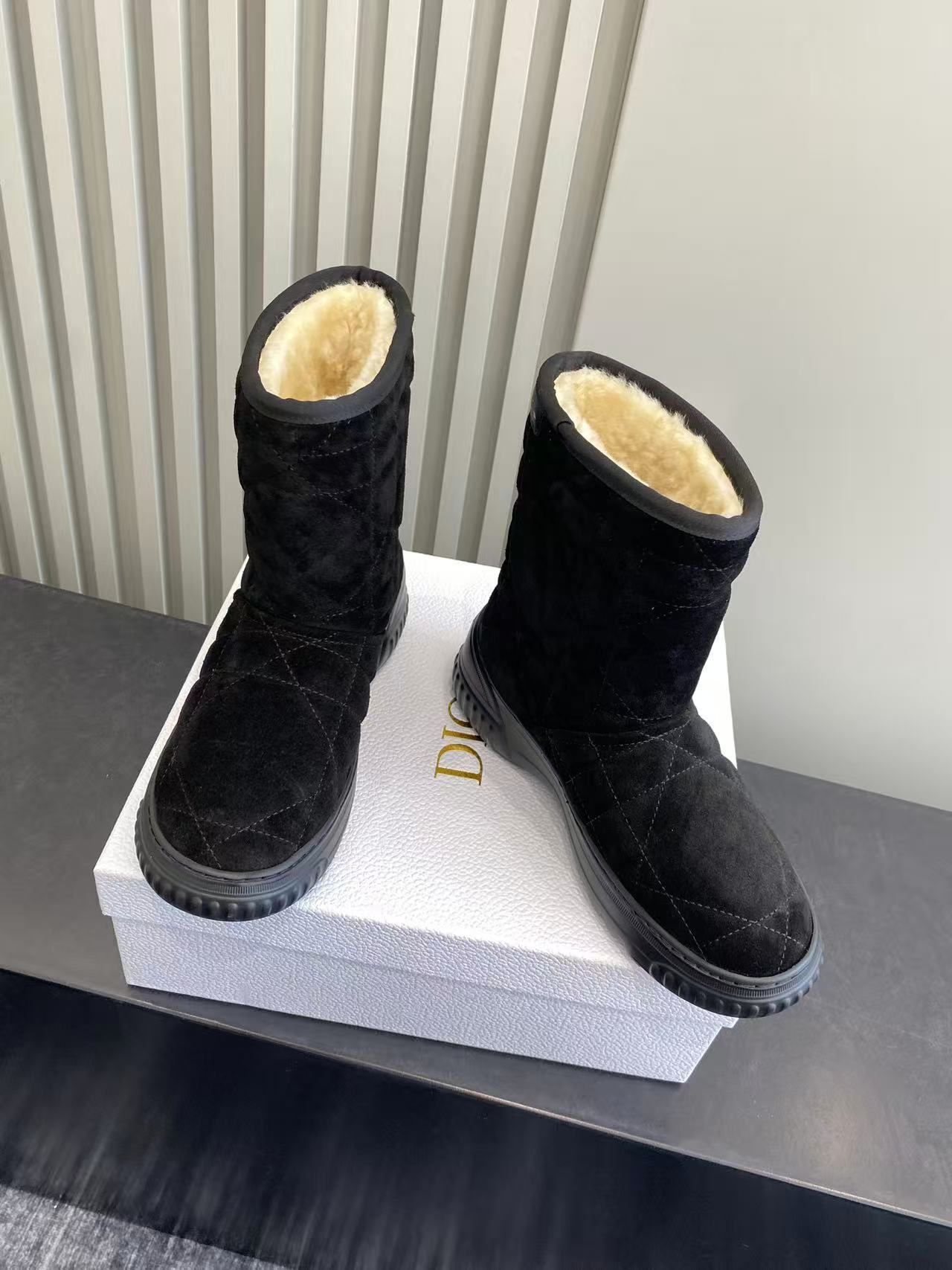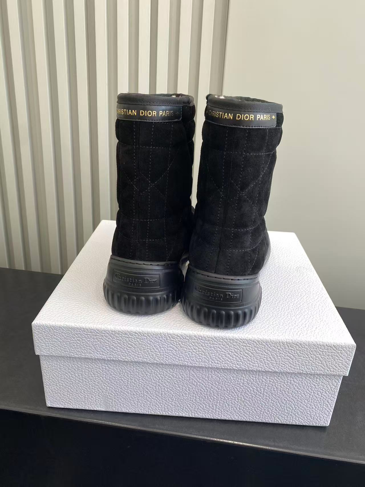 Dior Frost Black Cannage Quilted Ankle Boots with Shearling