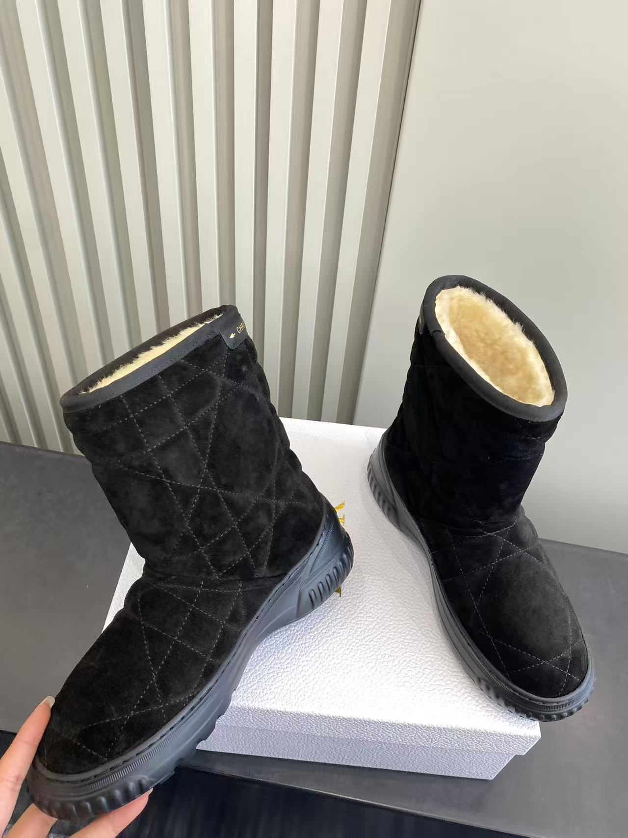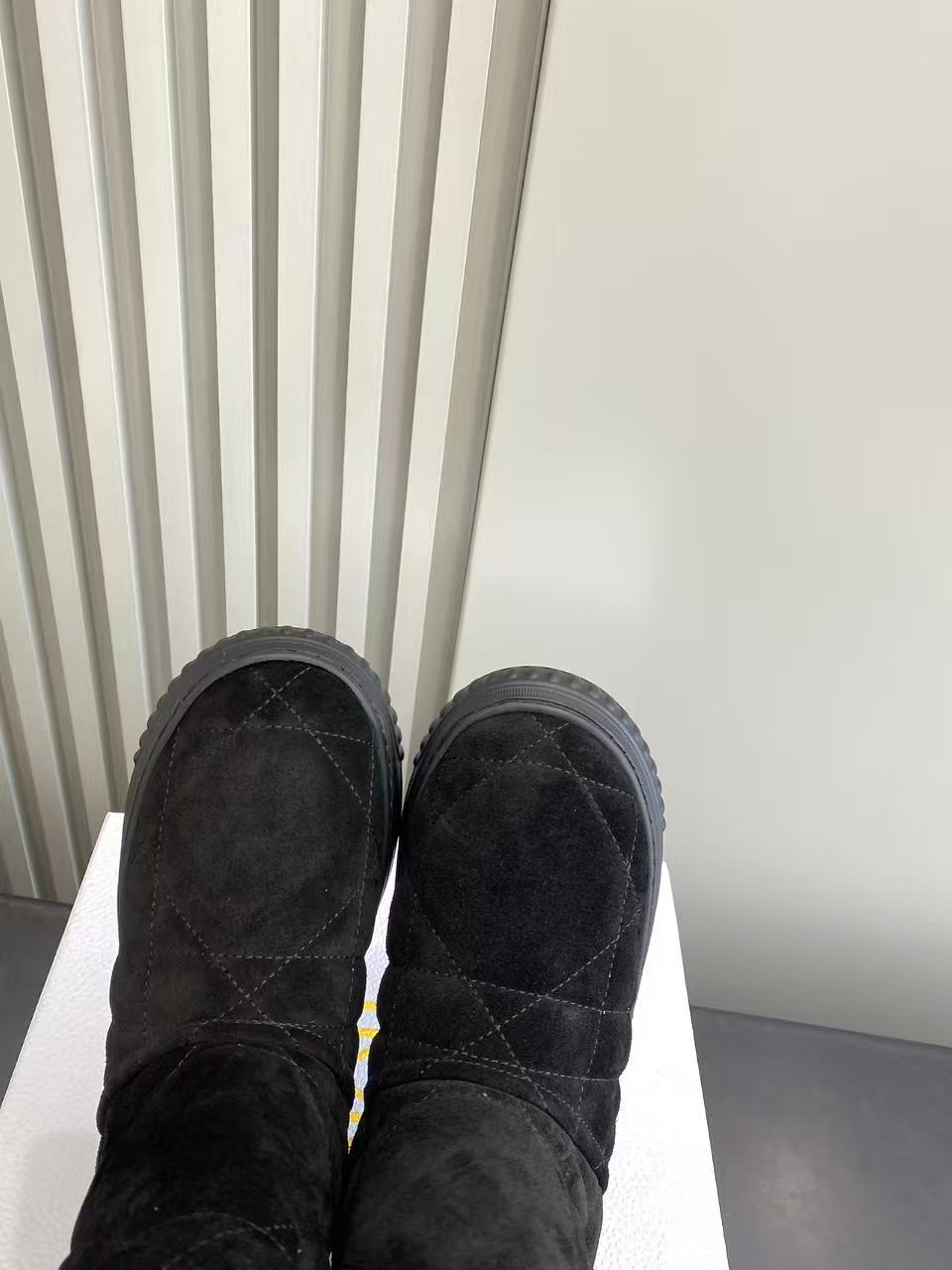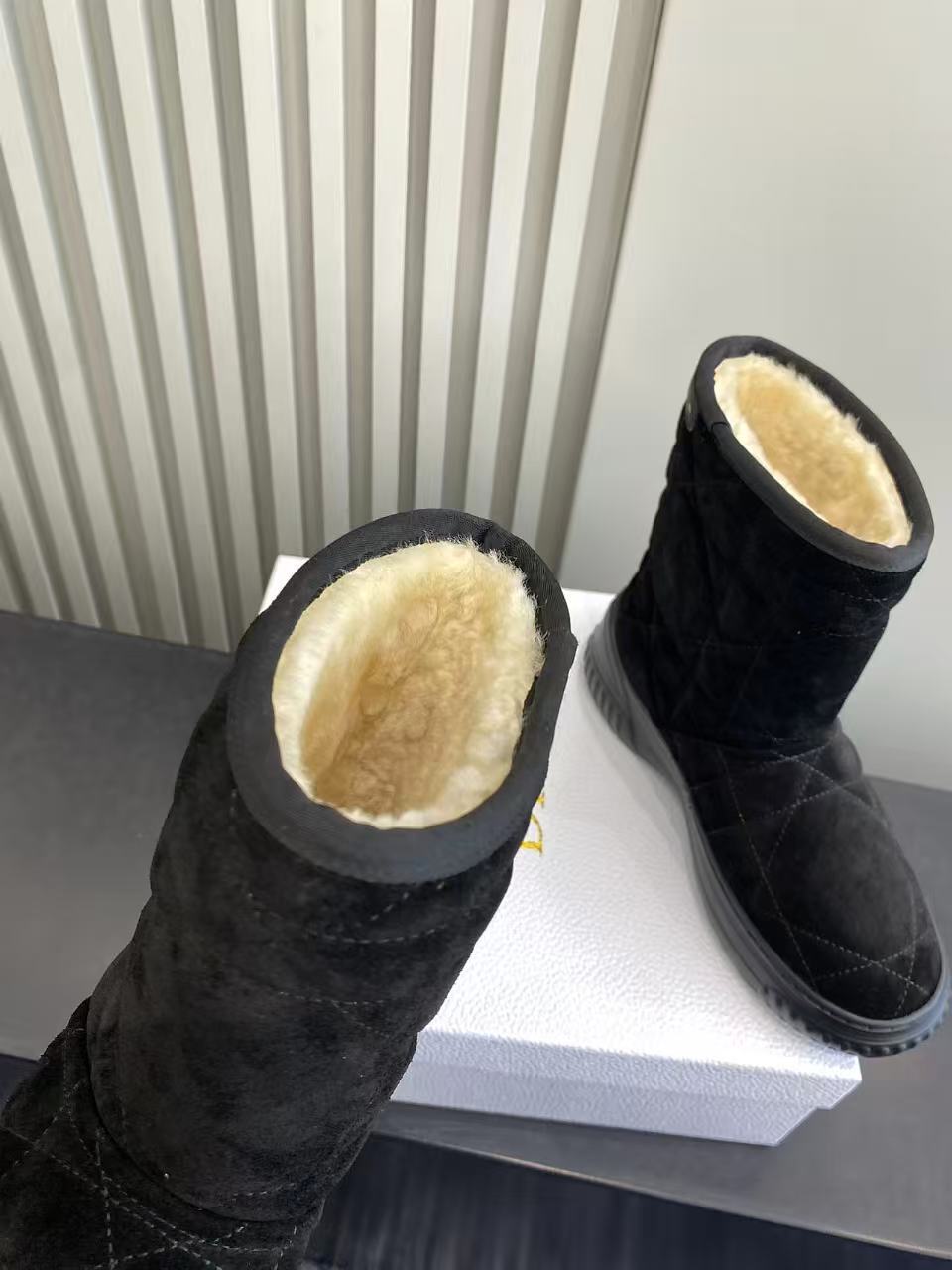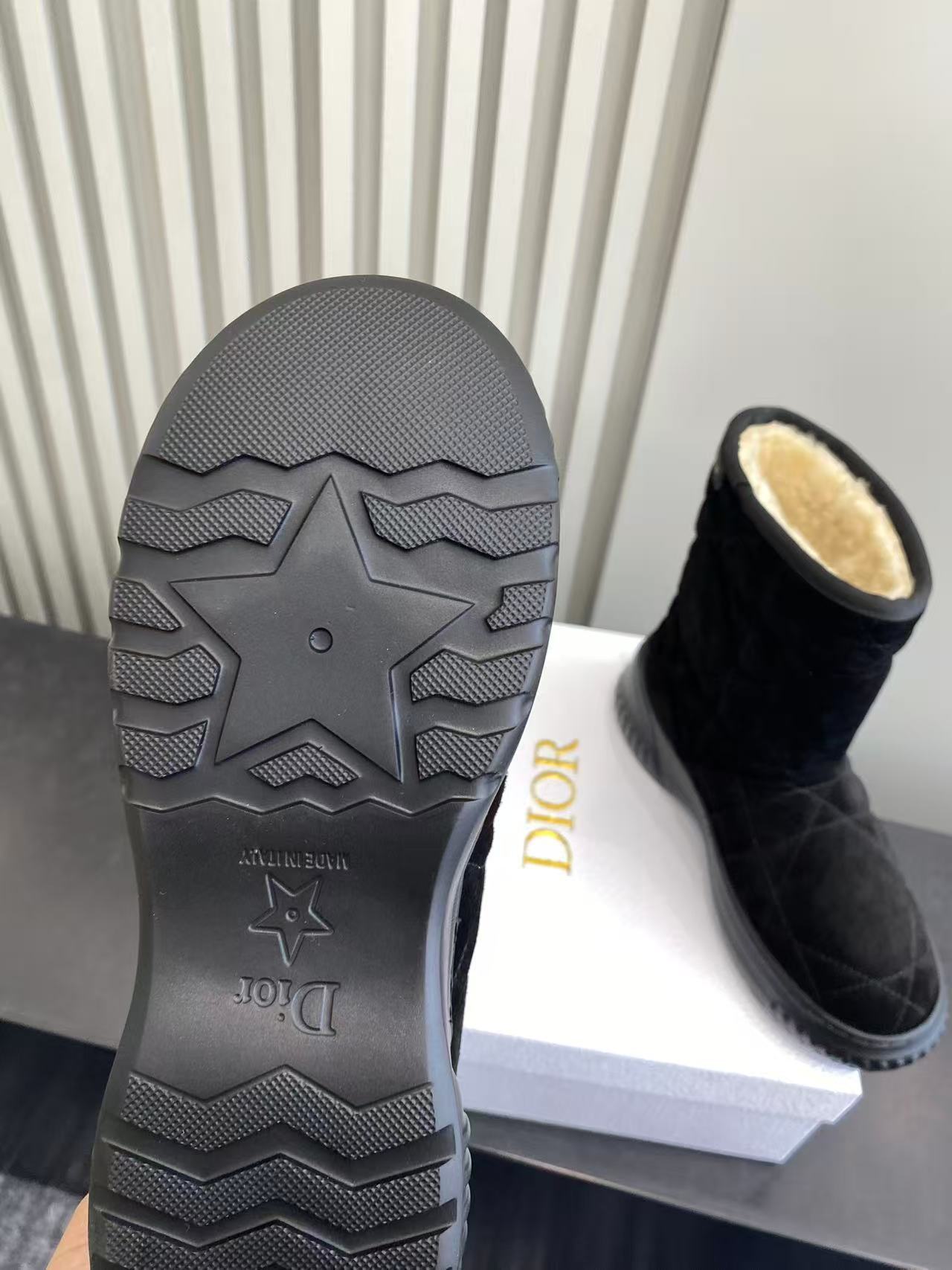 Dior Frost Black Cannage Quilted Ankle Boots with Shearling