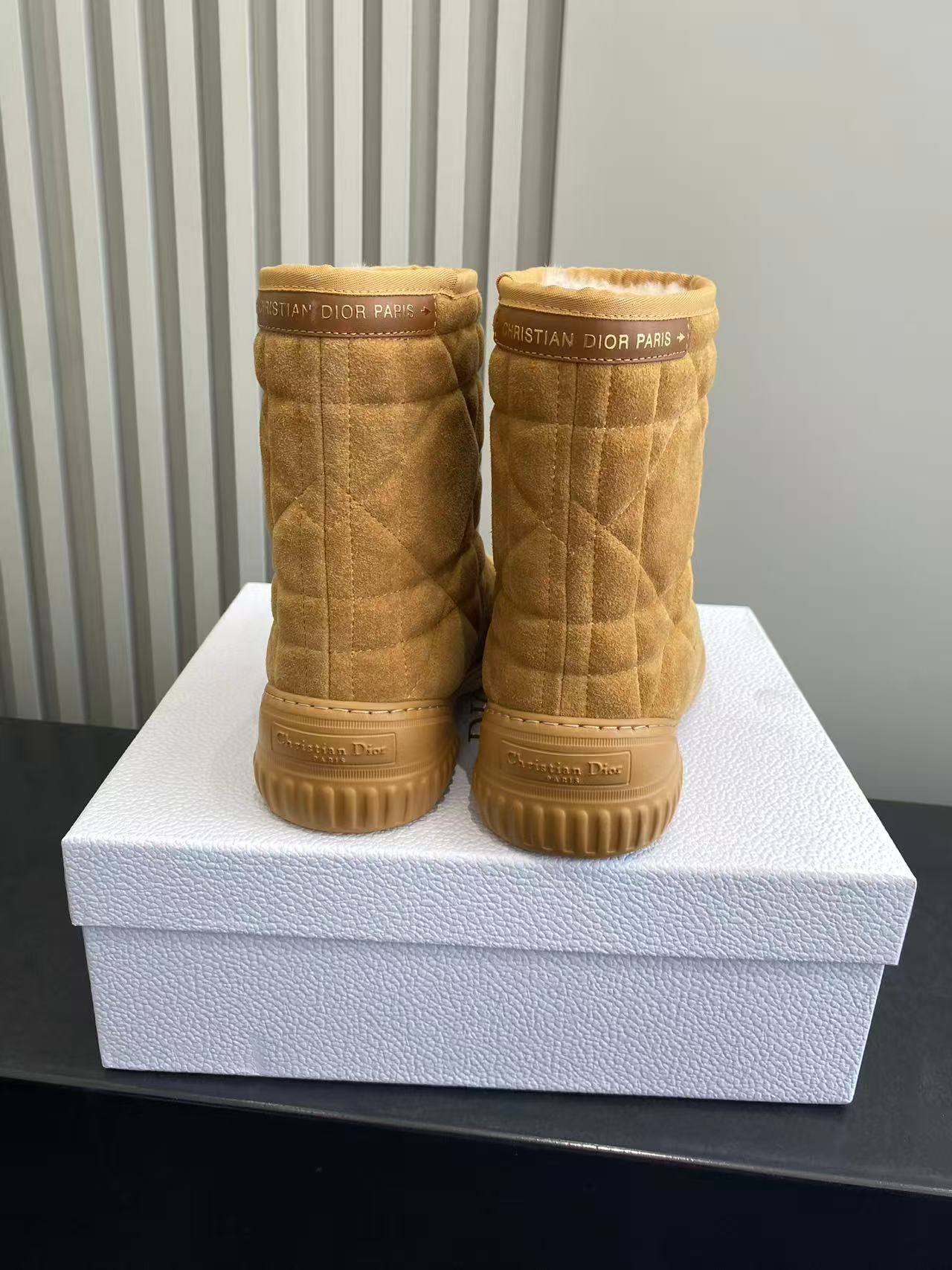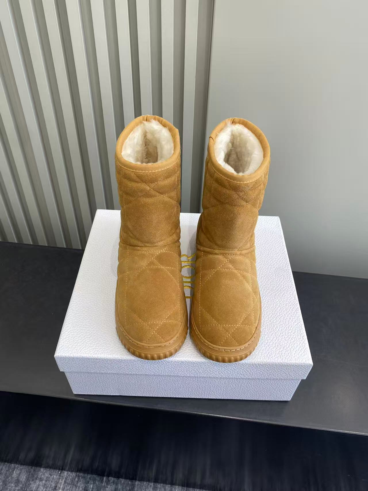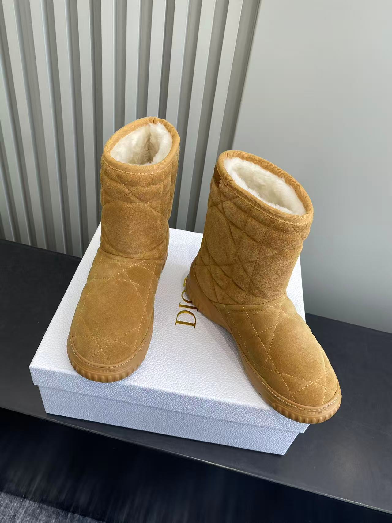 Dior Frost Ankle Boots in Camel Suede with Cannage Quilting