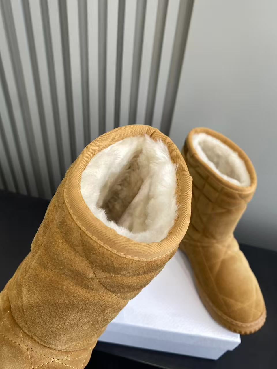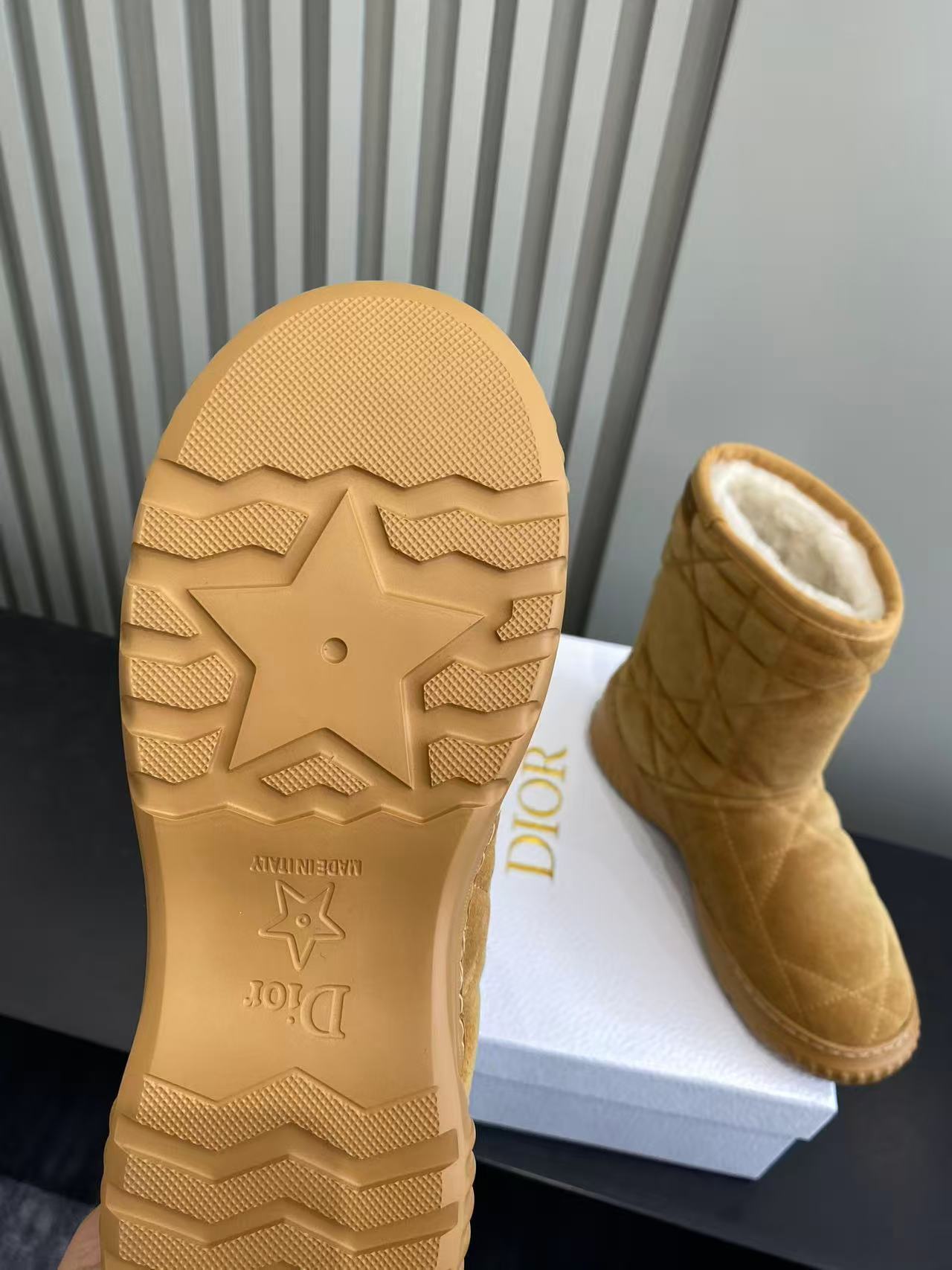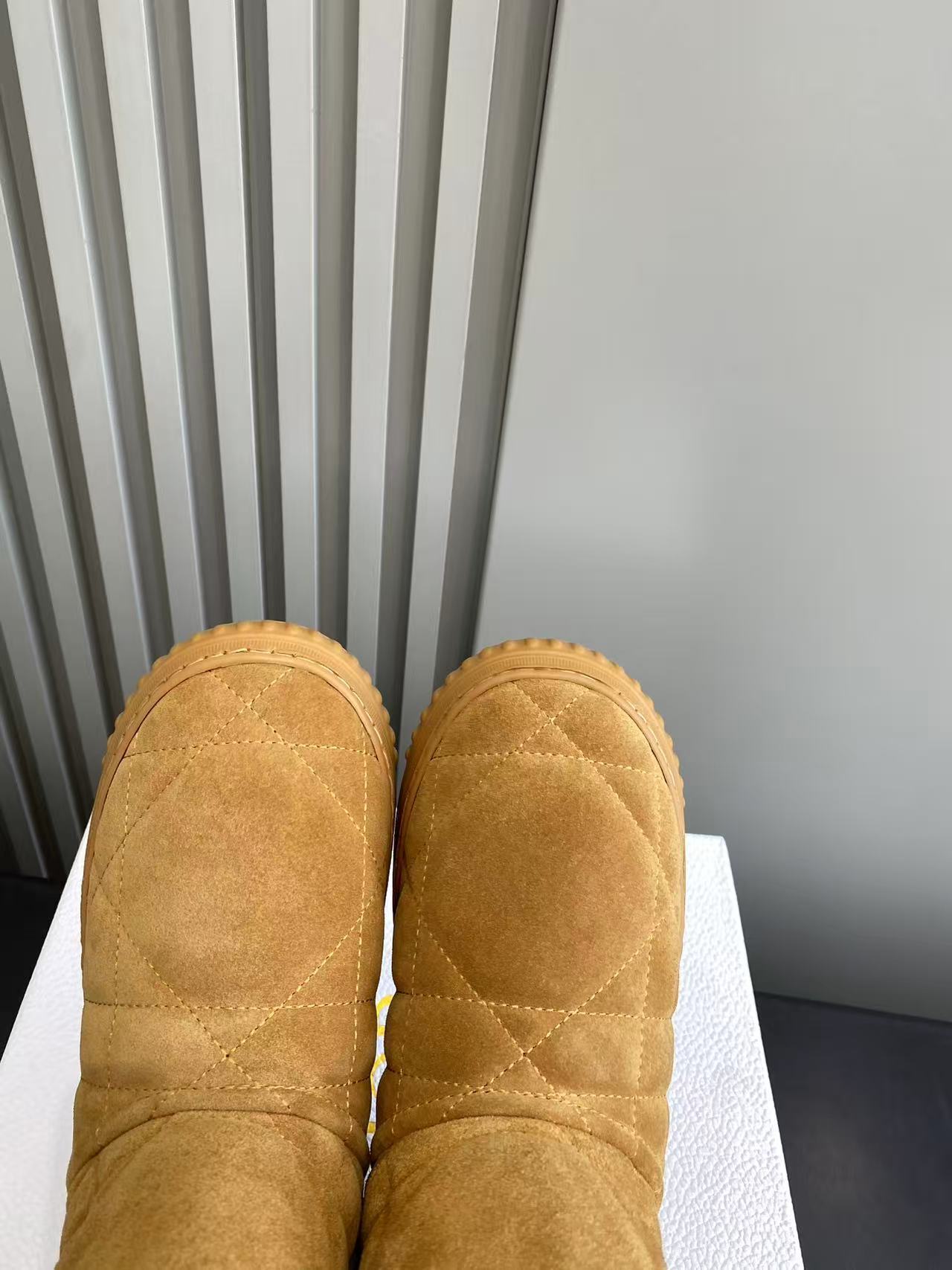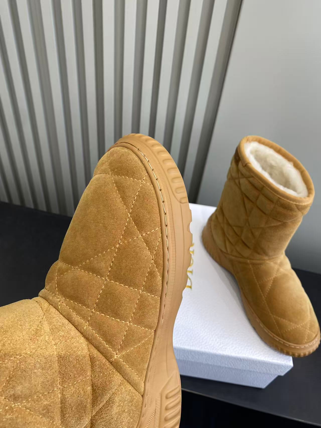 Dior Frost Ankle Boots in Camel Suede with Cannage Quilting