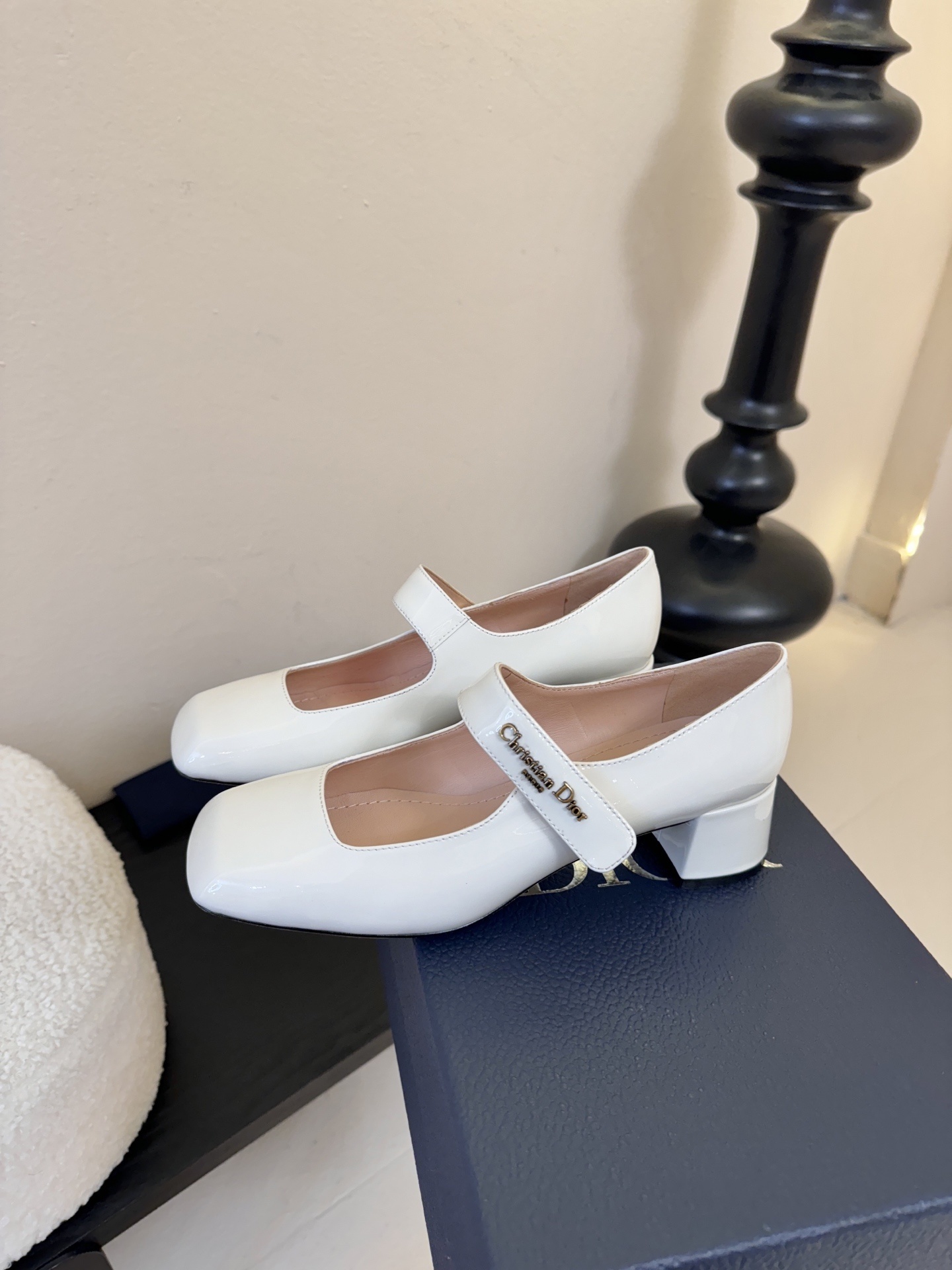 Dior White Patent Leather Mary Jane Pumps with Block Heel