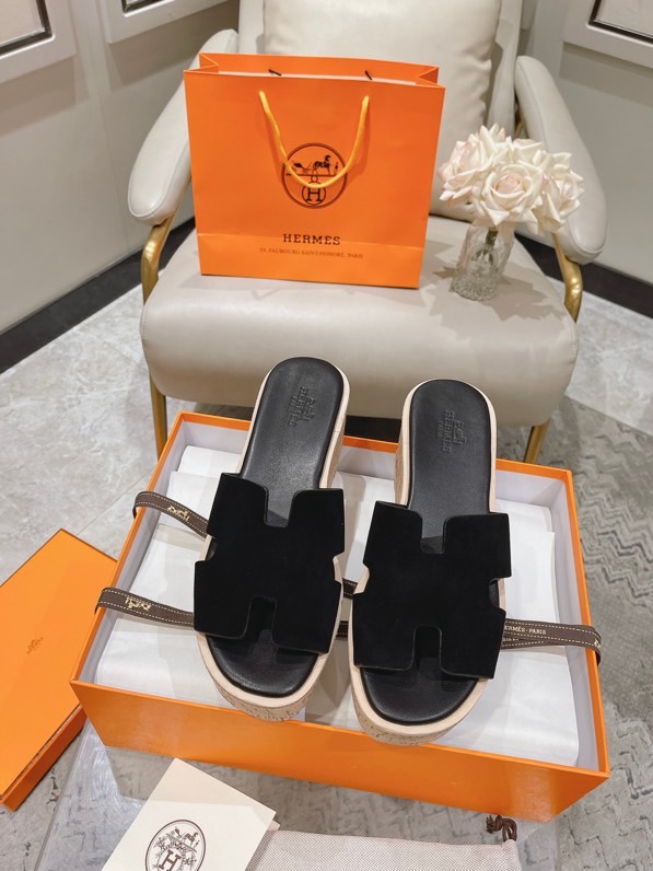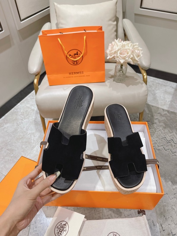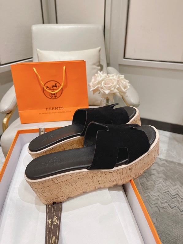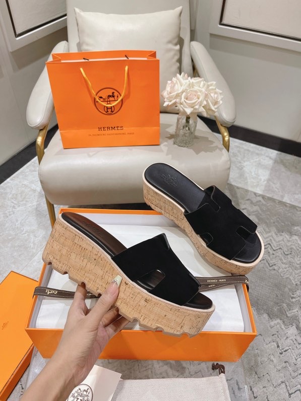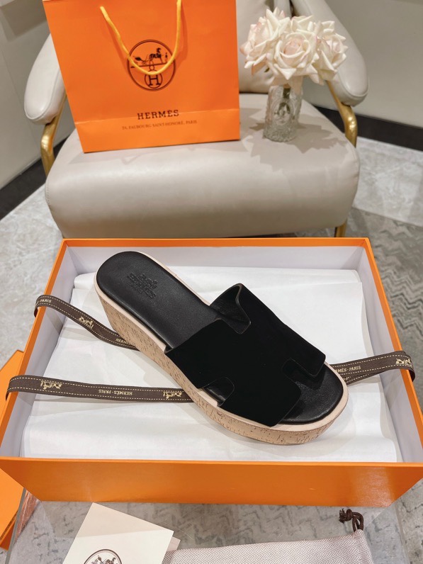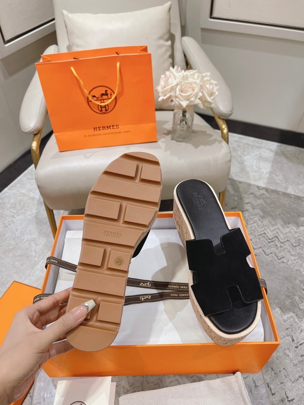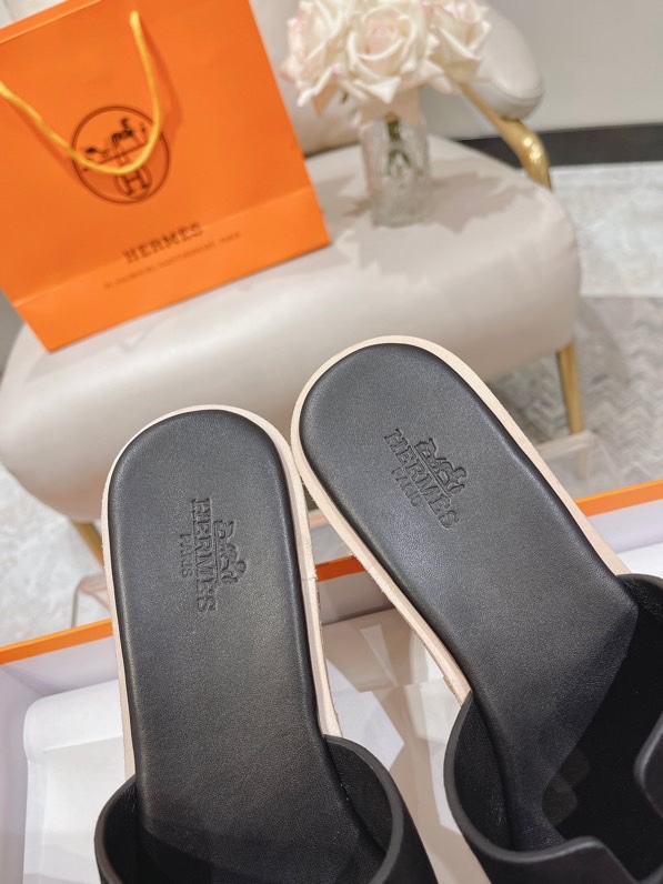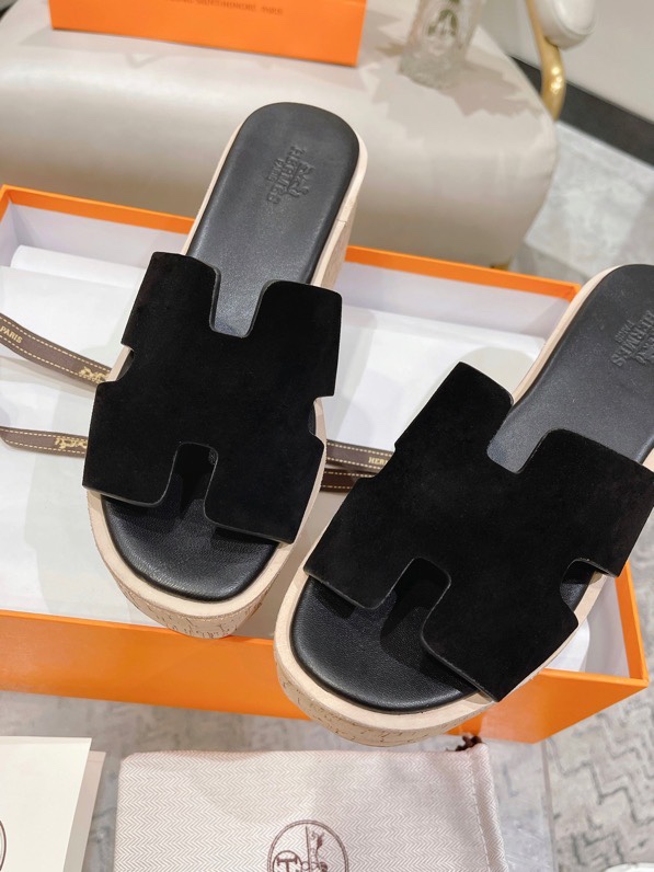 Hermes Calfskin Cork Eze 30 Sandals Black