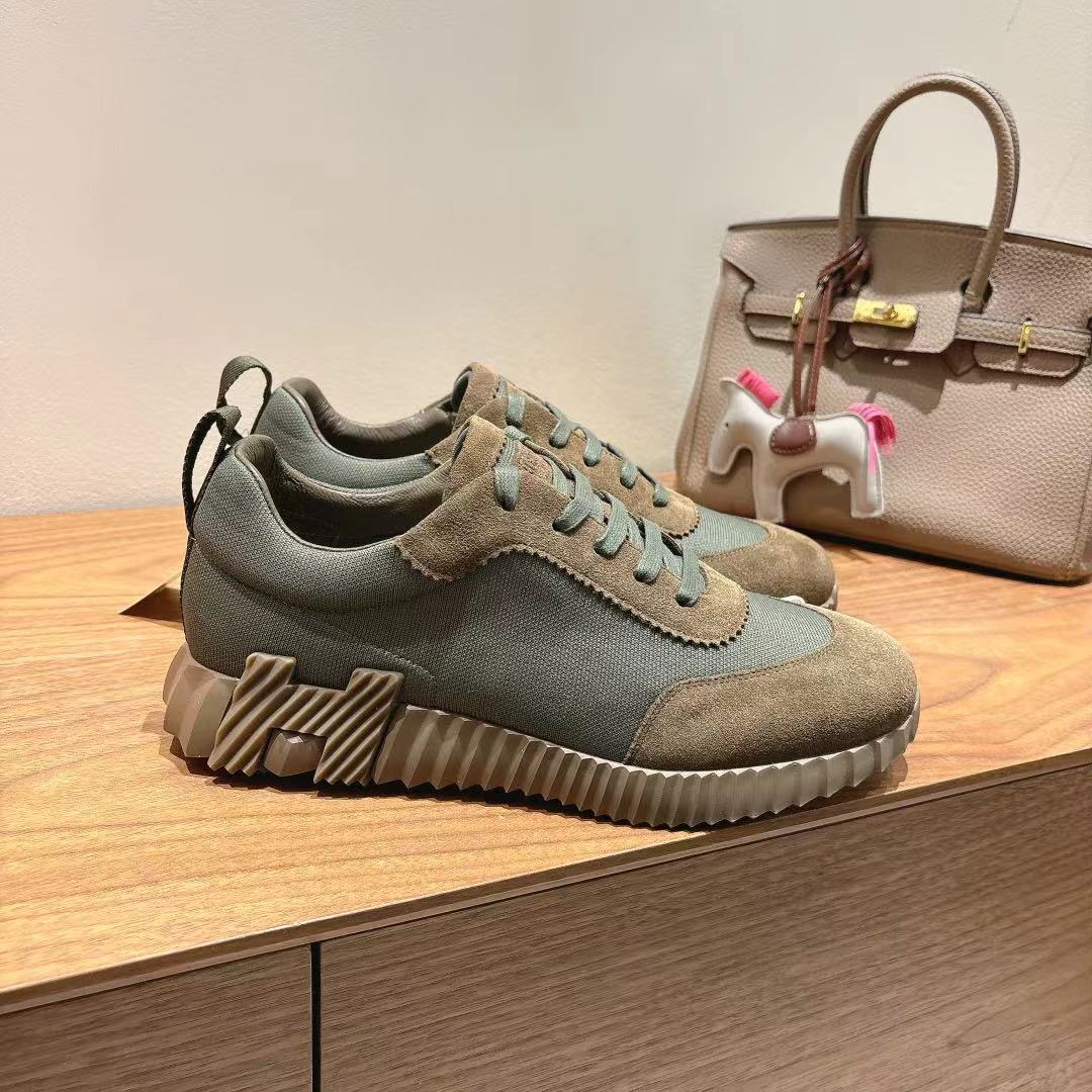 Hermes Goatskin Suede Goatskin Mens Bouncing Sneakers