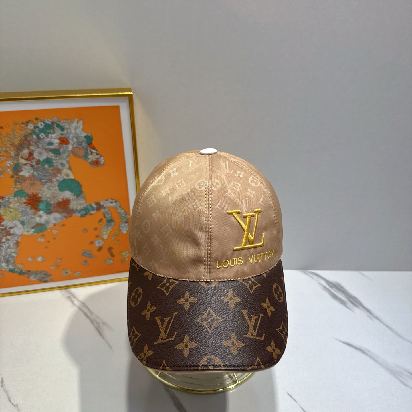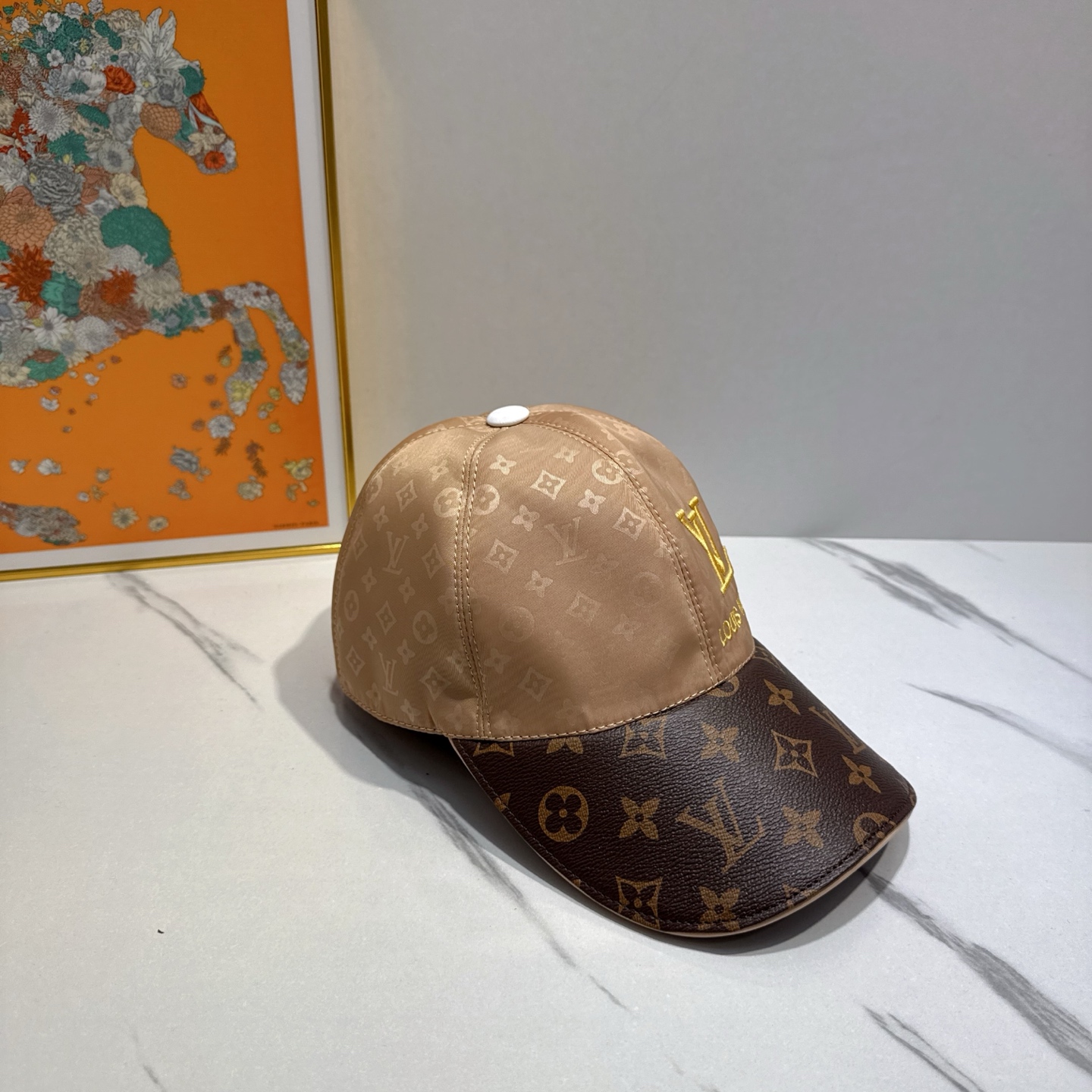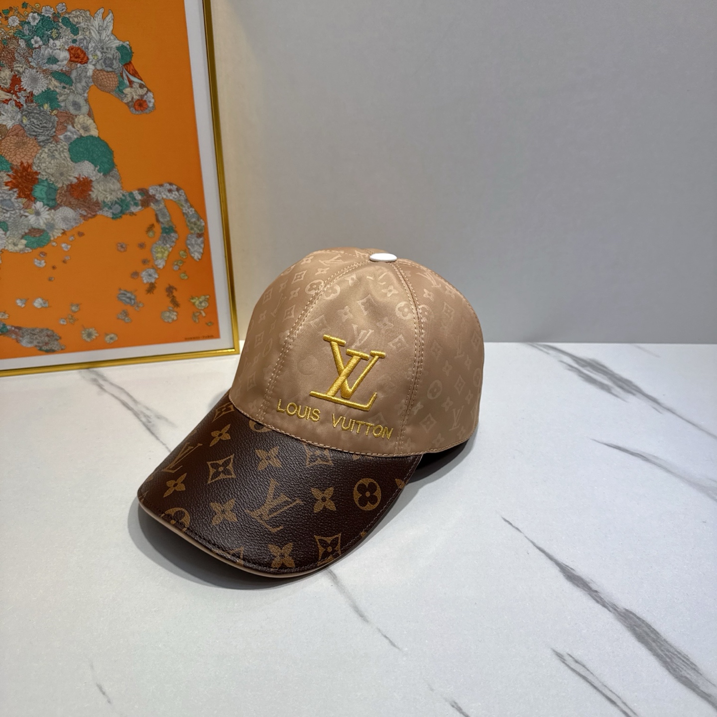 Louis Vuitton Beige and Brown Monogram Baseball Cap with LV Logo