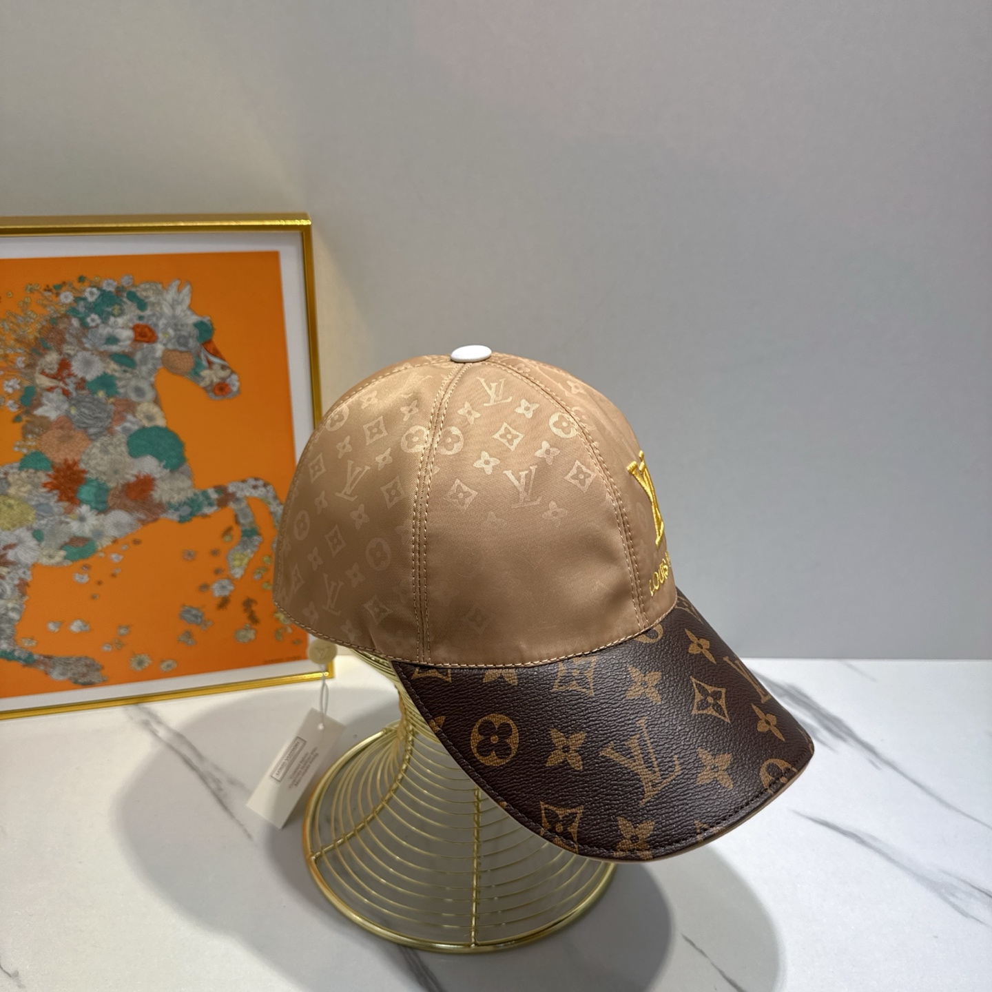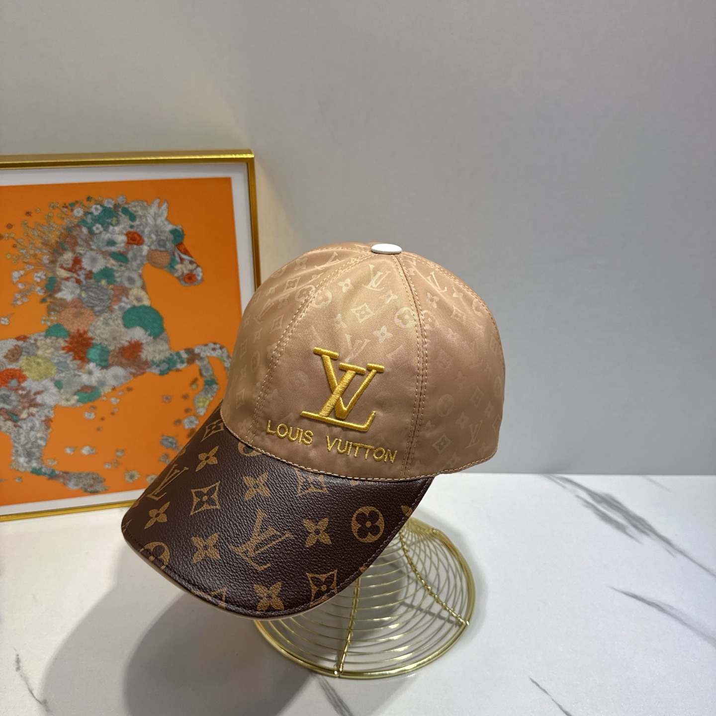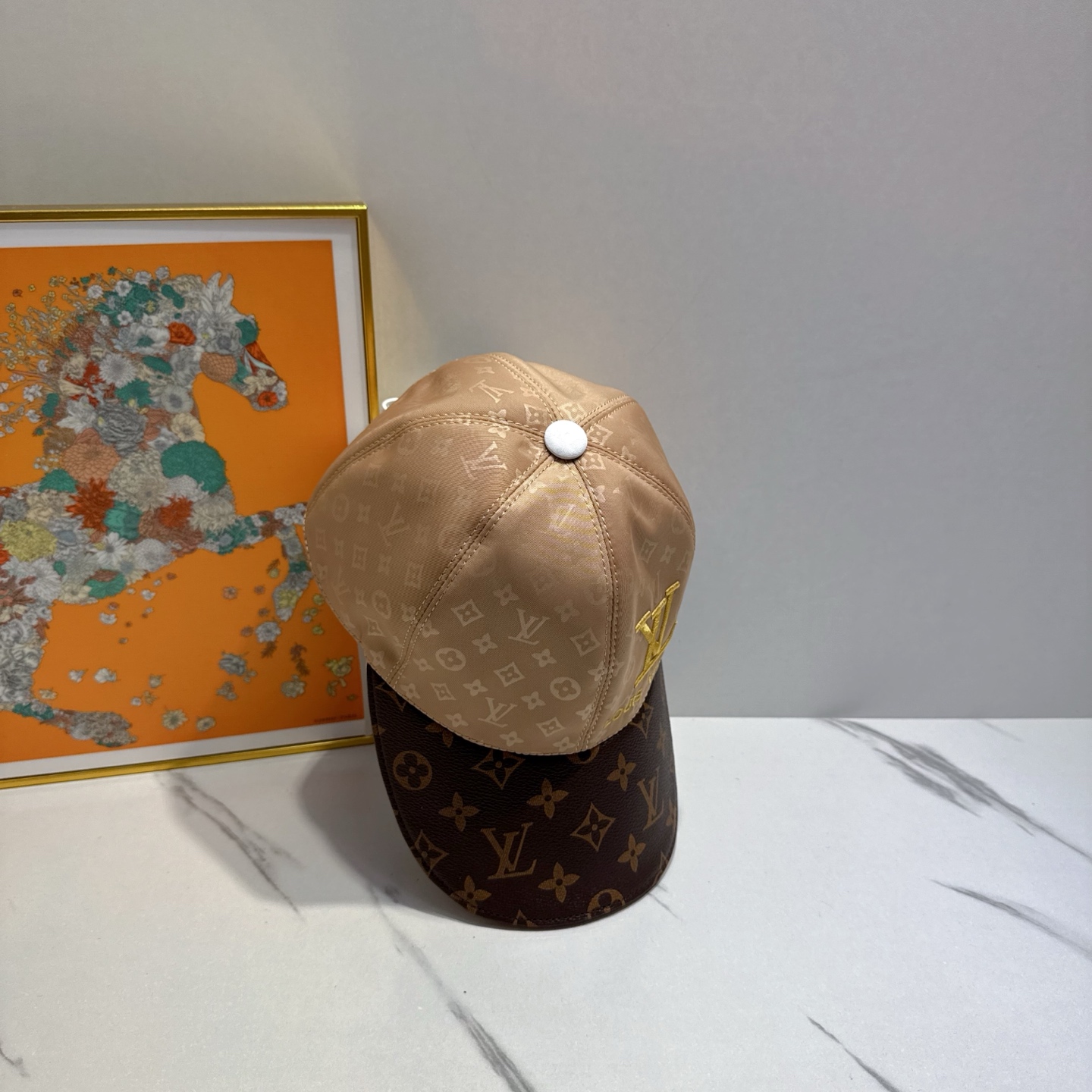 Louis Vuitton Beige and Brown Monogram Baseball Cap with LV Logo