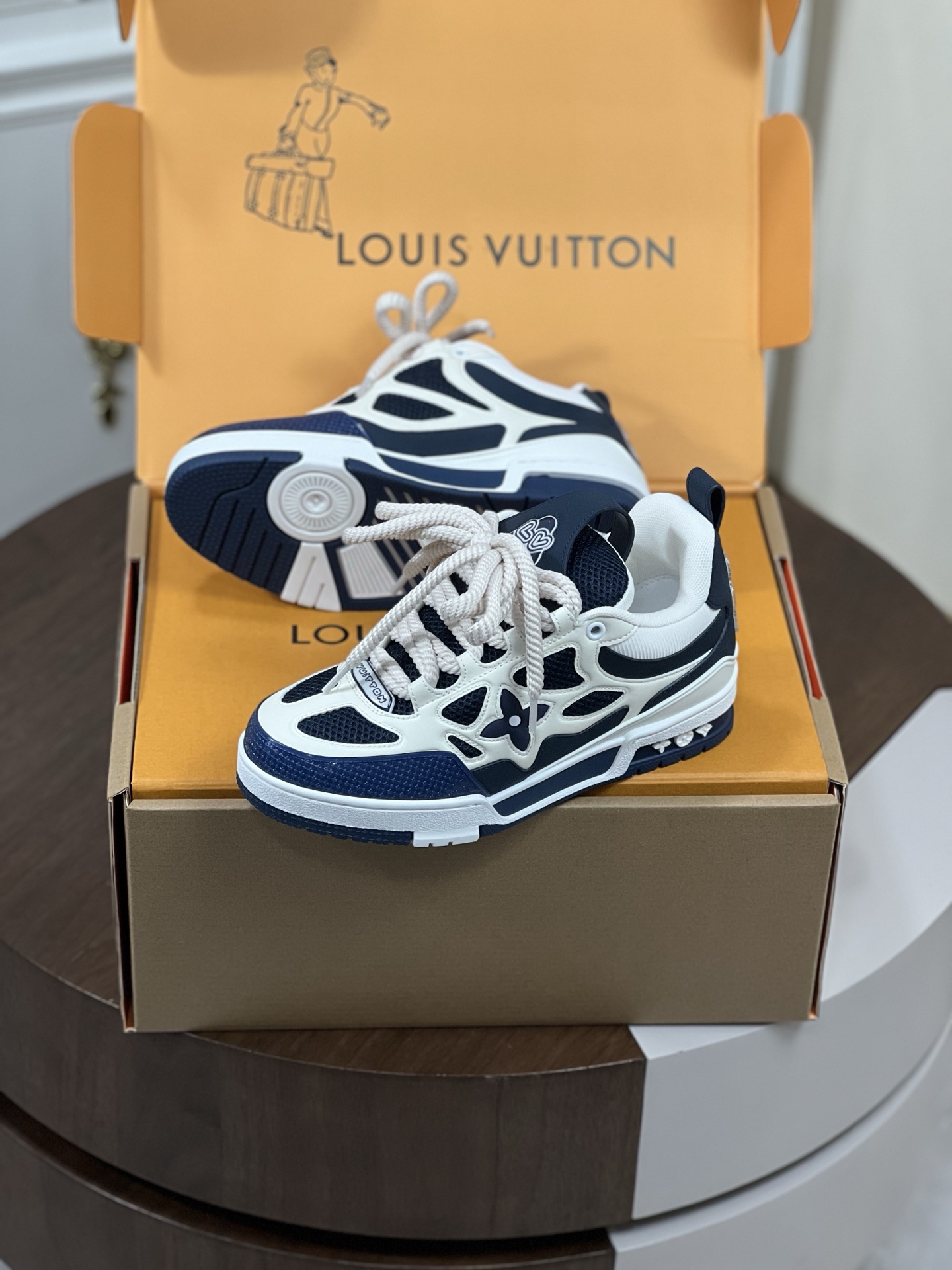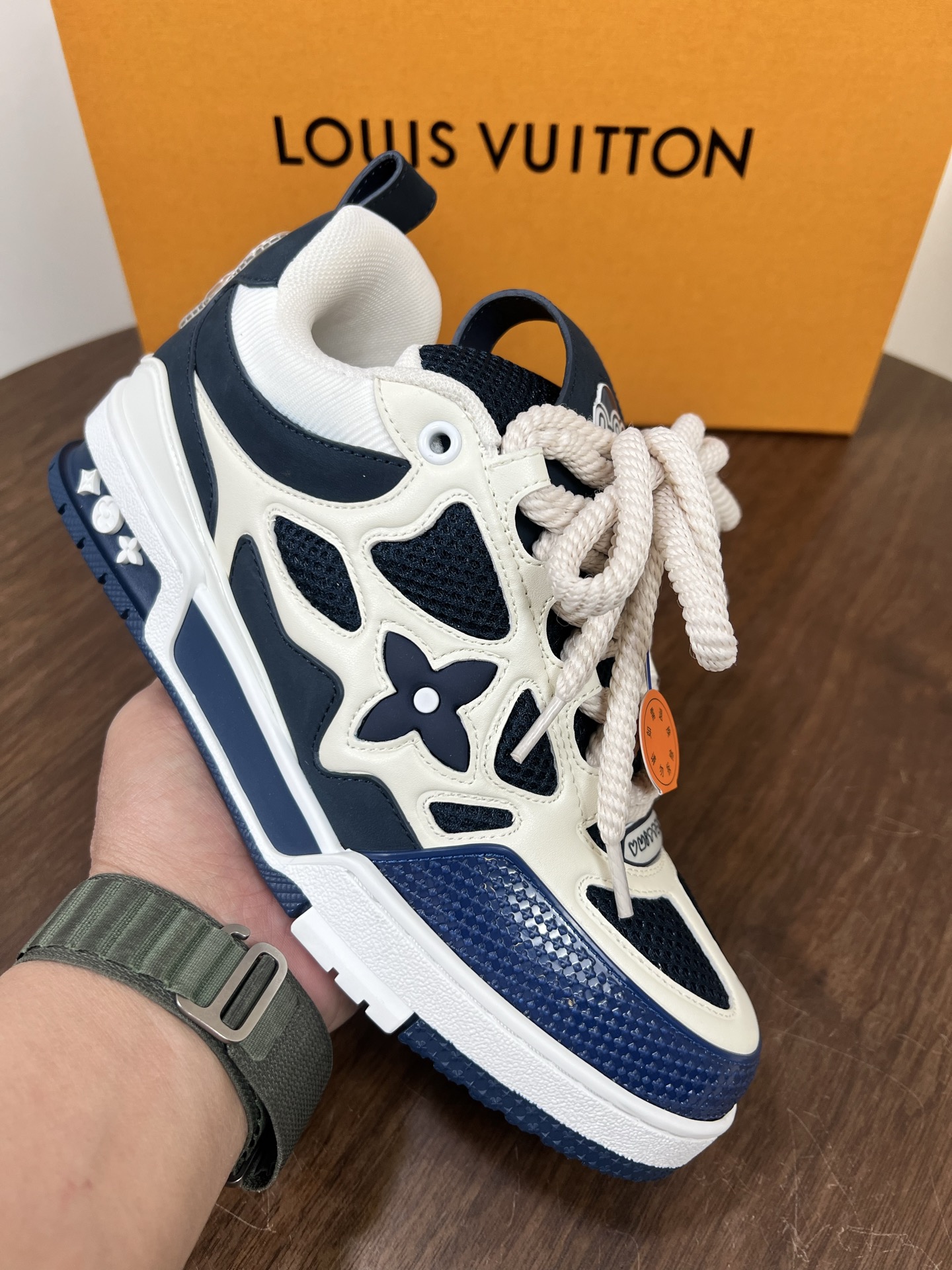 real talk, copped the louis vuitton blue and white calf leather lv skate sneaker last month as a b-day treat for myself. gotta say, though they took an age to arrive, these kicks are walking chalk art — the fit is snug yet comfy straight out of the box, and man, people just can't stop dropping compliments. legit worth the wait.