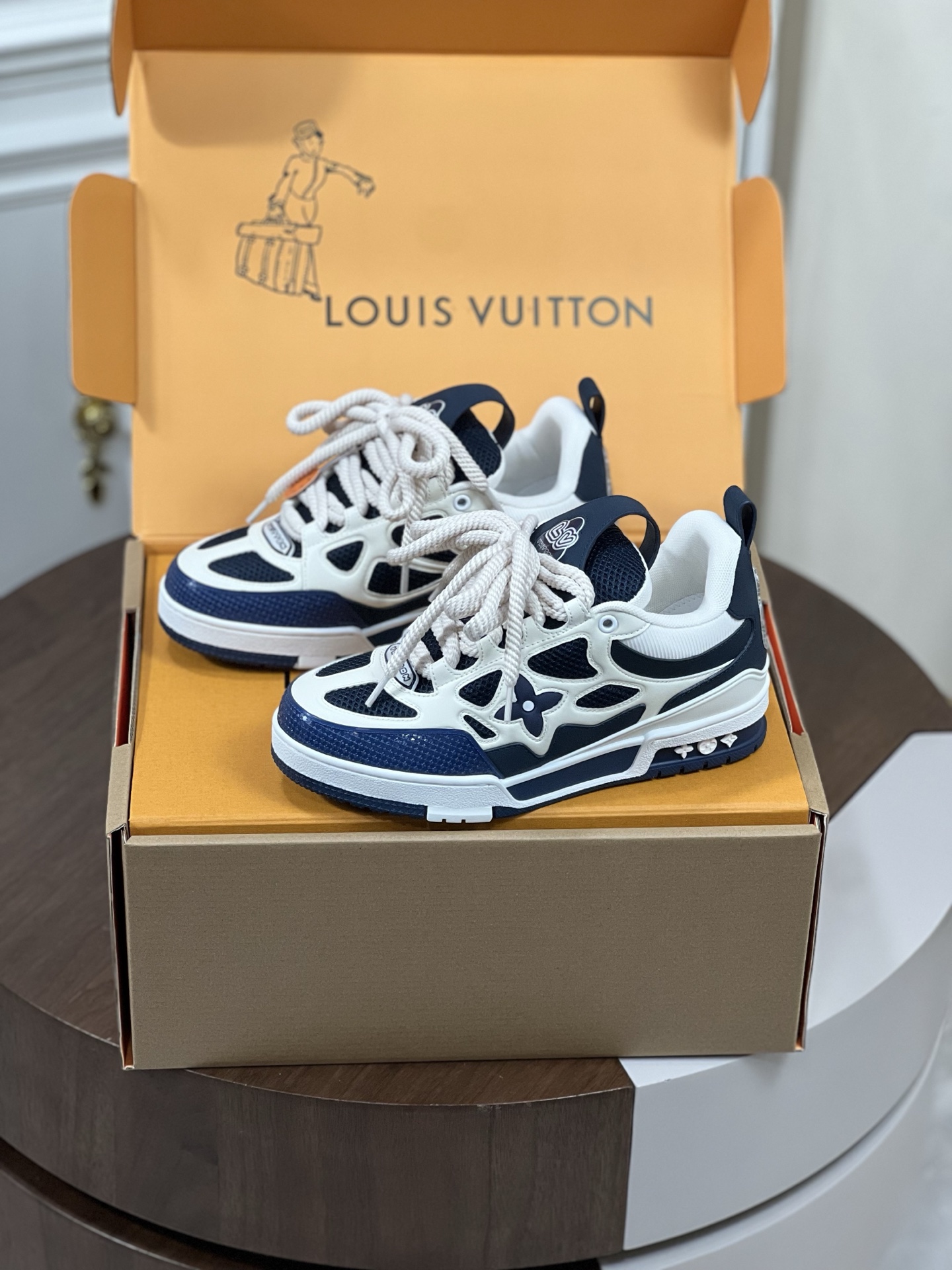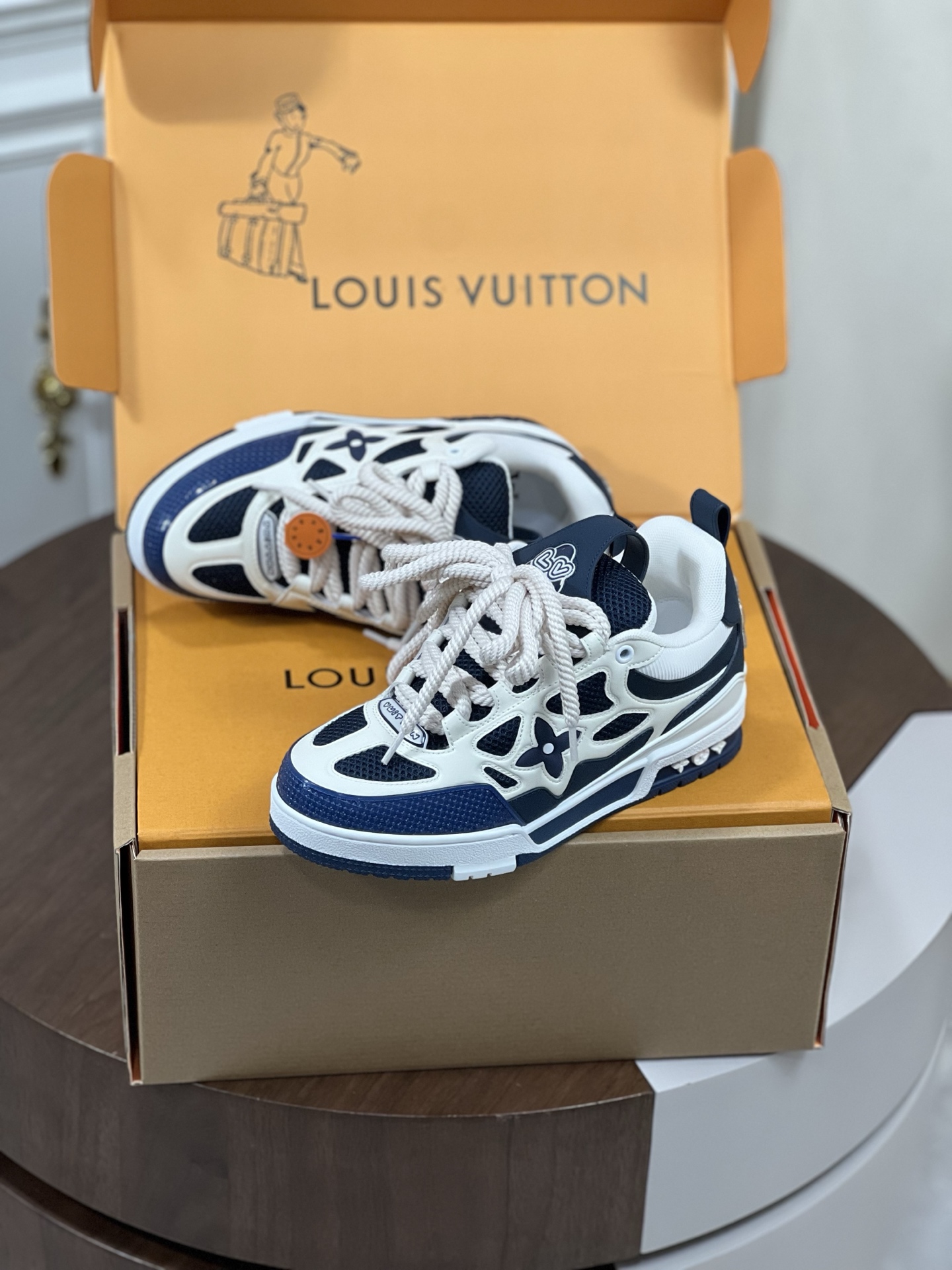 Louis Vuitton Blue and White Calf Leather LV Skate Sneaker