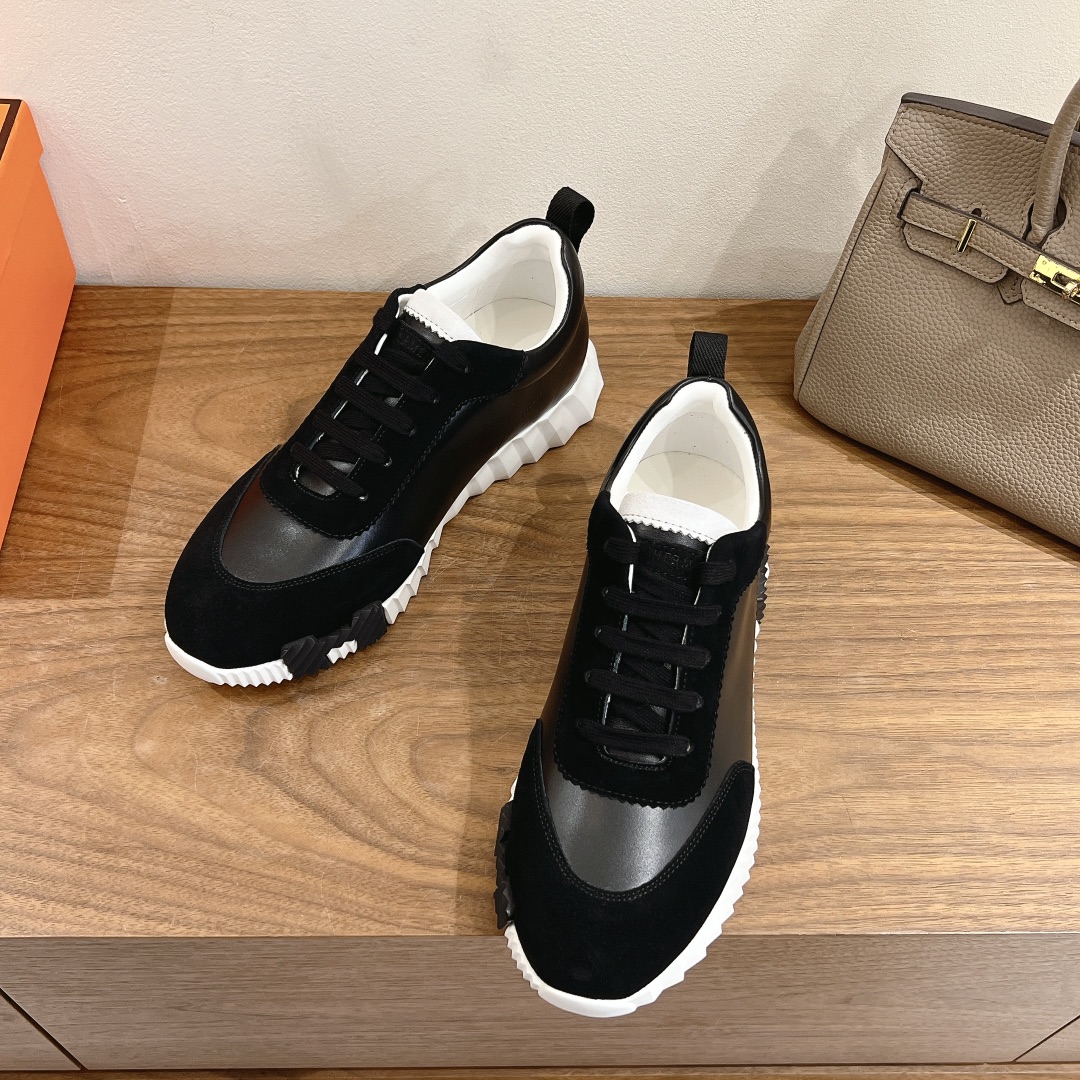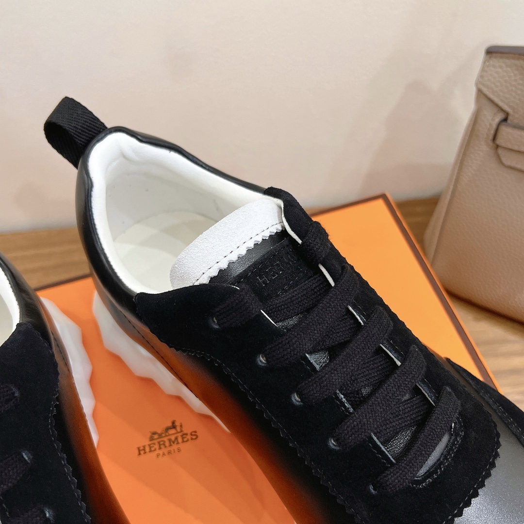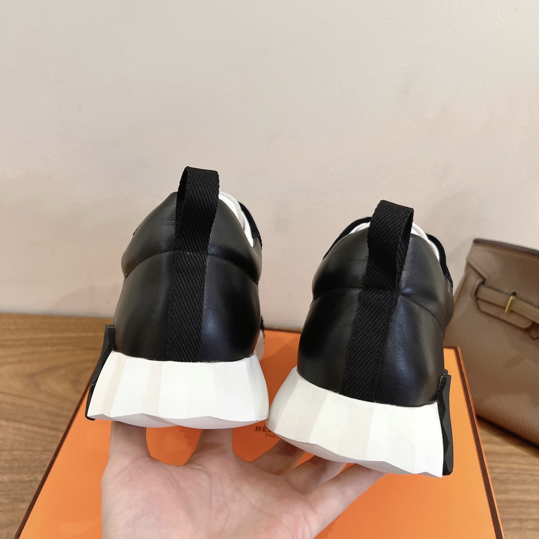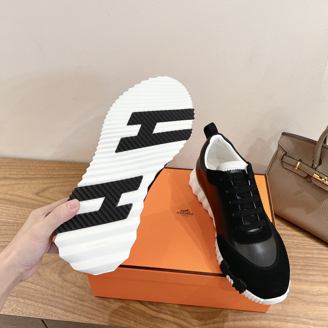 NEW HERMES H BLACK BOUNCING LEATHER SNEAKER SHOES LOAFERS SLIPPER MEN’S