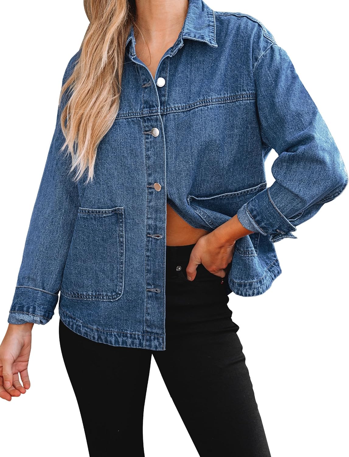 $24.02luvamia Denim Jackets for Women Trendy Oversized Long Sleeve Button Down Jean Jacket Casual Shacket with Patch Pockets