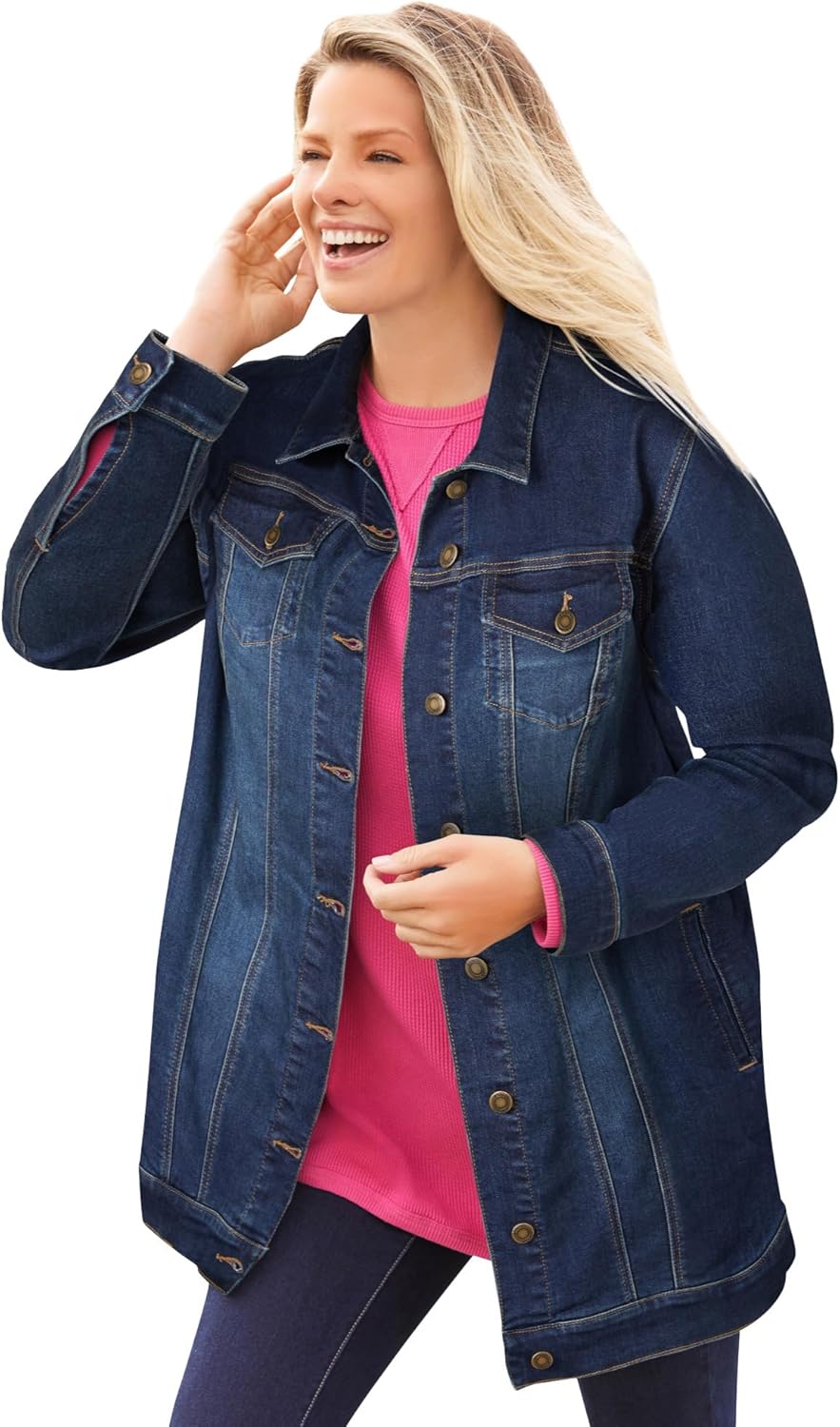 $36.74Woman Within Plus Size Long Stretch Denim Jacket Oversized Jean Jacket